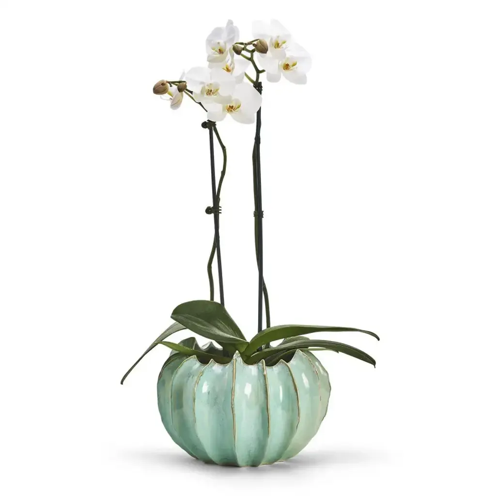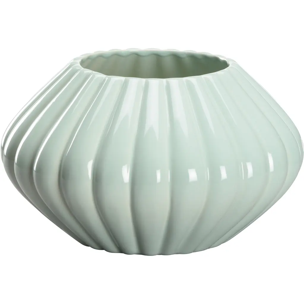This large gourd shaped vase is crafted with ceramic and finished with a celadon green glaze. Each piece is hand crafted and will be unique! The perfect way to display your favorite blooms.