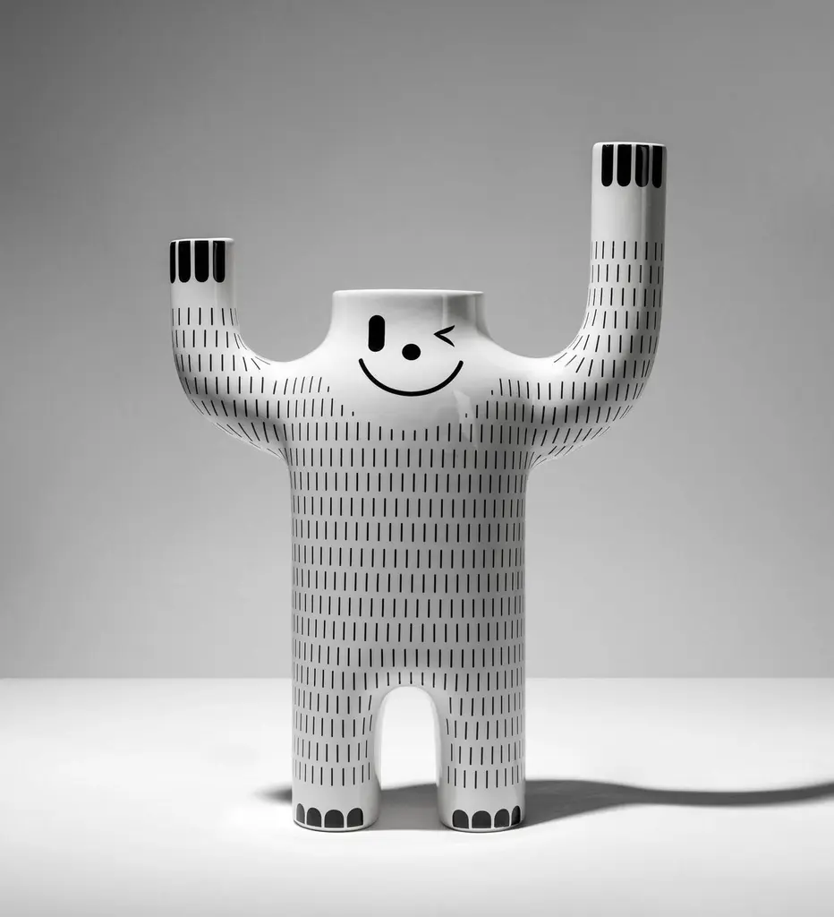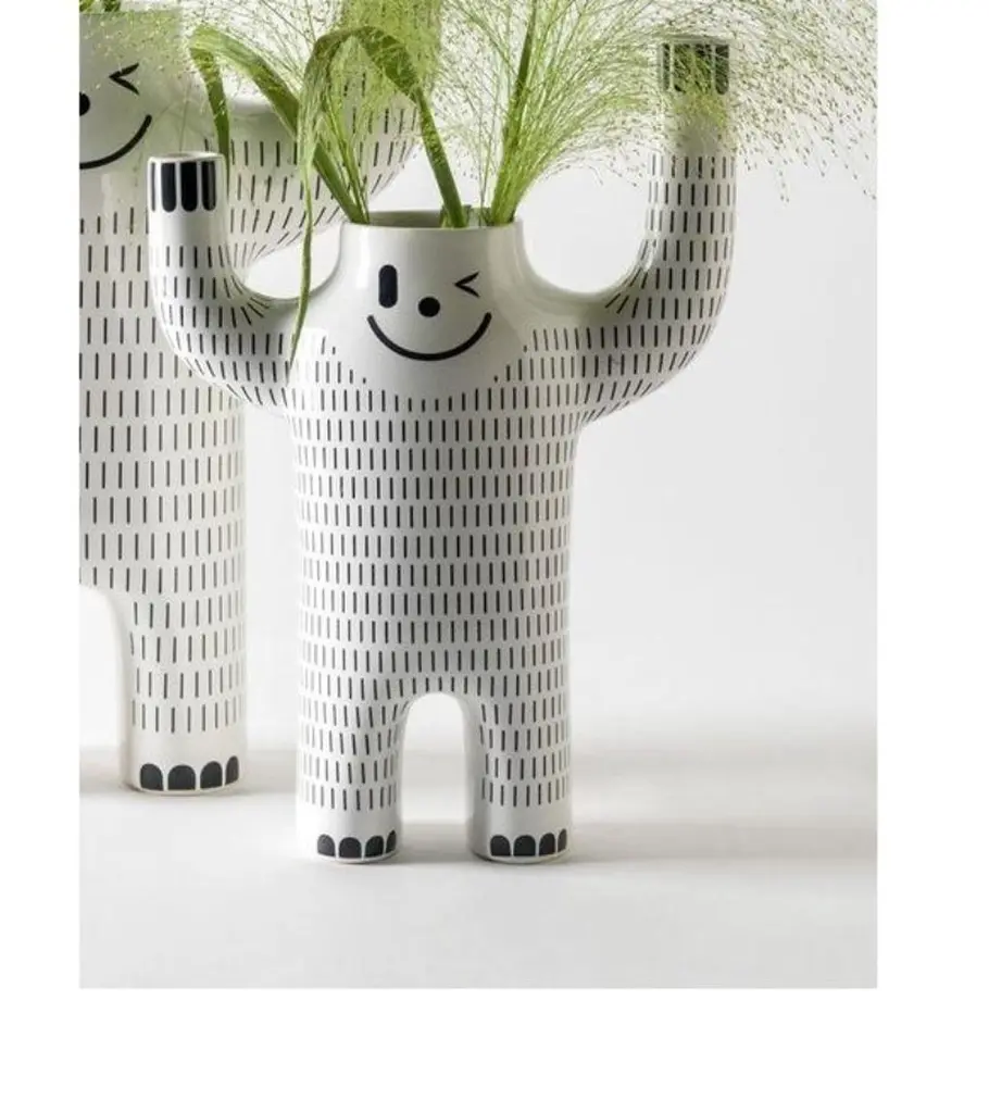 Large Happy Yeti vase by Jaime Hayon Dimensions: D 14 x W 33 x H 47 cm Materials: Glazed ceramic vase in white with decorations in black.Also available in size Small.From when I was little, I always found the Yeti story funny - that snow monster that wants to frighten those that go to the north pole. Converted into a vase, you can put plants in the head so that it looks like it has hair and scares a little more. The little decorations, not only have a decorative purpose but also can have artistic value and an emotional one where a sense of humor fits in. A new version of the Happy Susto collection.In 1972, a group of young architects and designers from Barcelona created BD with the aim of producing and marketing furniture and other objects for our projects, with complete creative freedom and with a criterion that has turned out to be quite different from the norm at companies in the sector, regarding both the shape and function.