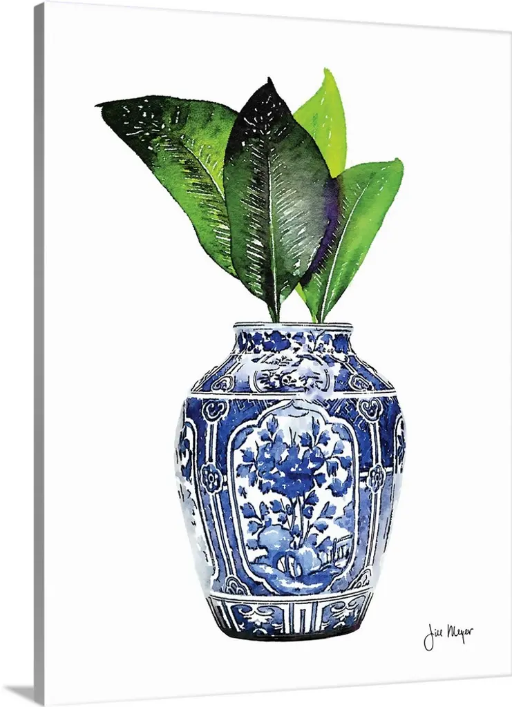 Ceramic. Blue/White Glaze. White Glazed Ceramic With Hand-Painted Blue Designs.. 10W X 10D X 25H