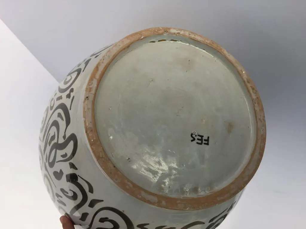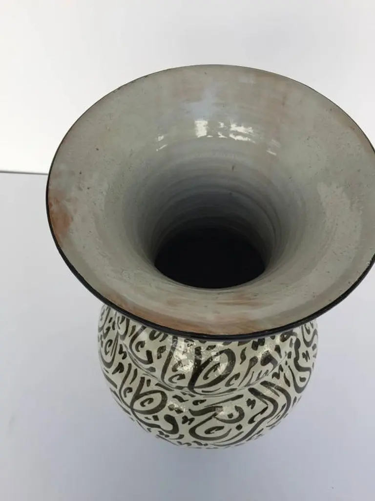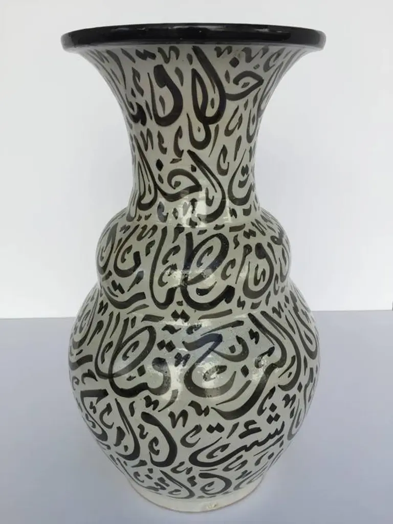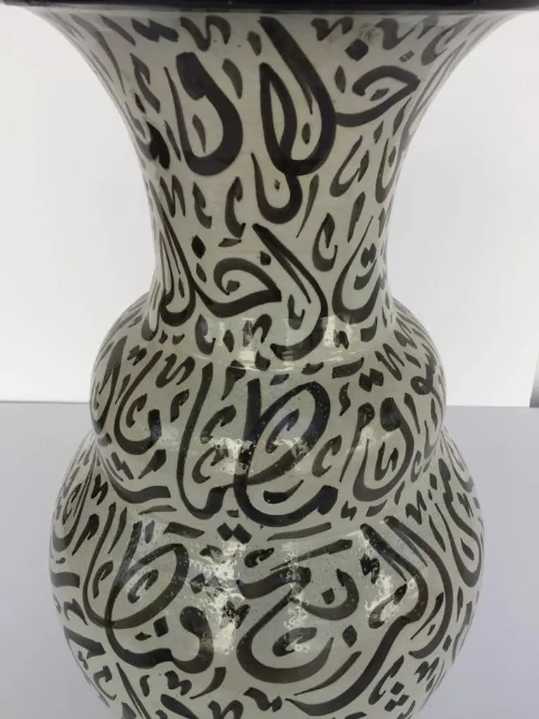 Large Moroccan Glazed Ceramic Vase From Fez With Arabic Calligraphy Writing