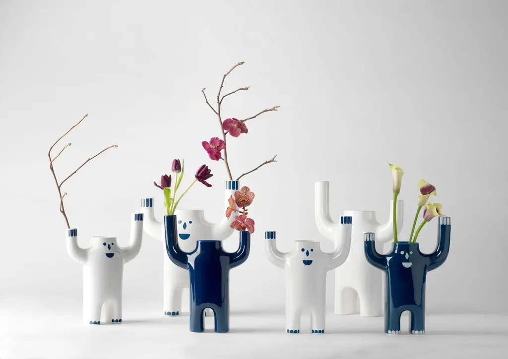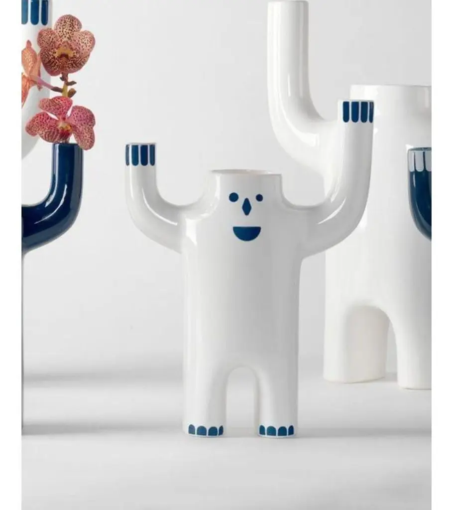 Large white happy susto vase by Jaime Hayon Dimensions: D 14 x W 33 x H 47 cm Materials: Glazed ceramic vase(s) in white or blue with decorations in white or blue.Also available in size small and in color blue.Little architectural pieces are what the master called them, which have naturally paralleled larger furniture items but are no less important due to their size. Among them is the humble water bottle designed by Josep M. Jujol, the imperfect vases by Xavier Mañosa, or the more iconic Showtime series by Jaime Hayon. An abundance of talent can be found in them, just the same as can be found in the pieces supporting them such as a cabinet. Their purpose is a decorative one, although, for us, they carry an emotional and artistic value. They are timeless and with the passing of time, we continue to add designs to a collection that continues to grow in importance within the range we have on offer. Several months ago we presented our chandelier REmix collection by Curro Claret, and now we inaugurate a ceramic collection that carries Jaime Hayon’s unmistakable character and humor. It’s called Happy Susto (fright in English) and is made in a couple of sizes, colors, and finishes. Little decorative items have been part of BD’s catalog since Ettore Sottsass drafted the Shiva vase back in 1973In 1972, a group of young architects and designers from Barcelona created BD with the aim of producing and marketing furniture and other objects for our projects, with complete creative freedom and with a criterion that has turned out to be quite different from the norm at companies in the sector, regarding both the shape and function.