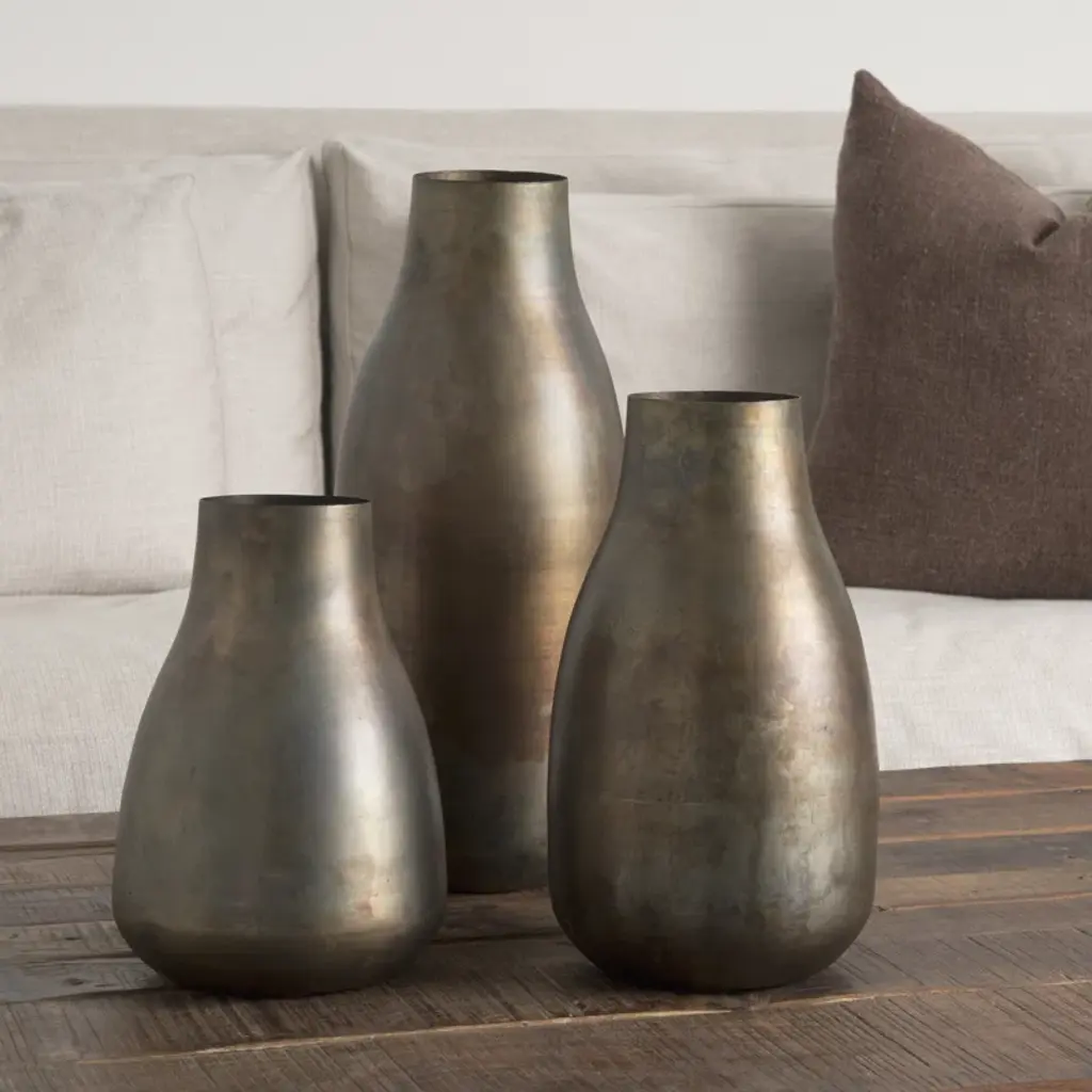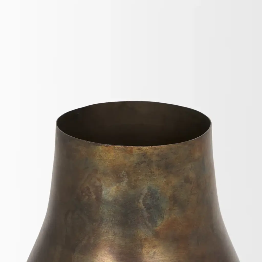 This hand-painted, handcrafted metal vase offers a unique way to display faux florals or dried botanicals in your home. Its novel shape and distressed finish give it one-of-a-kind appeal.