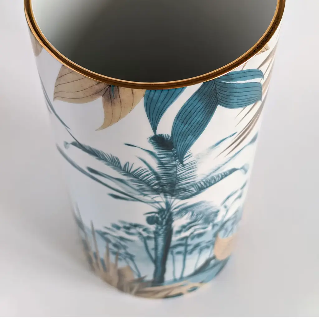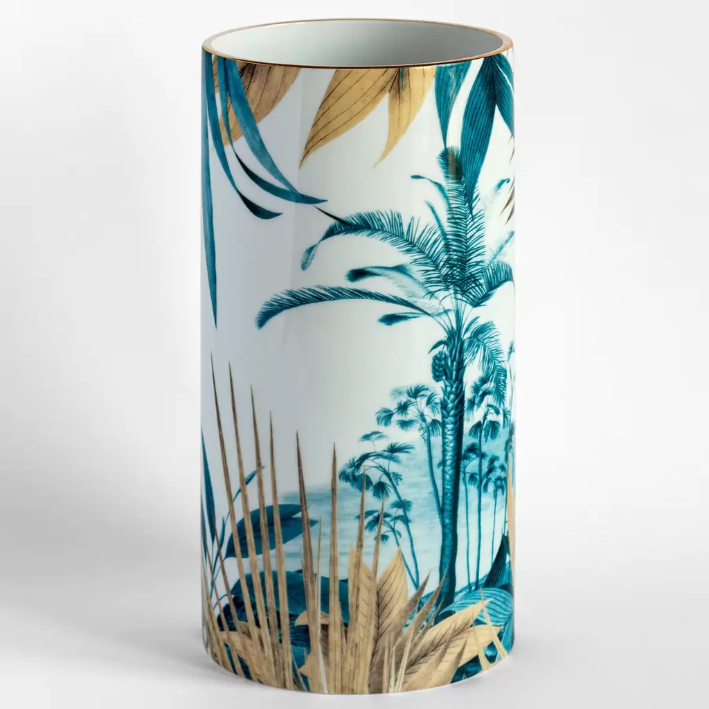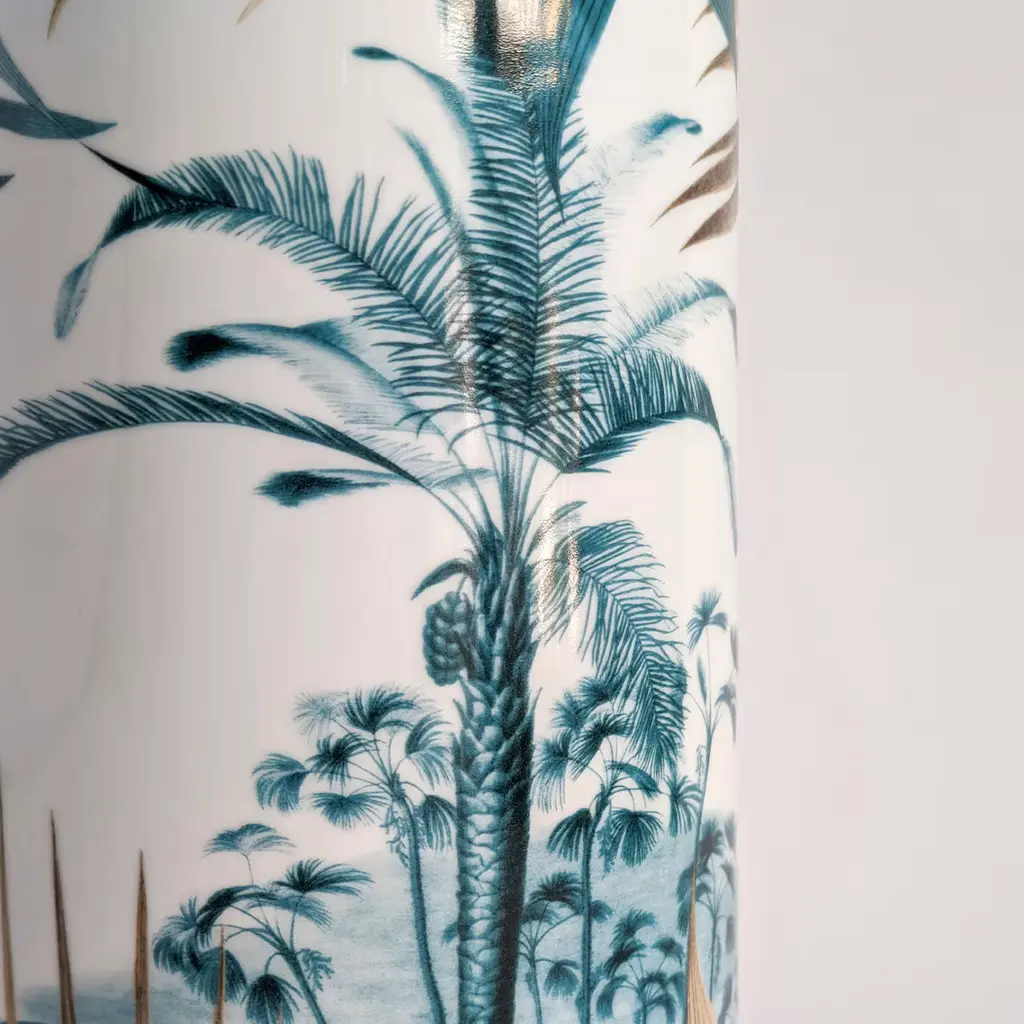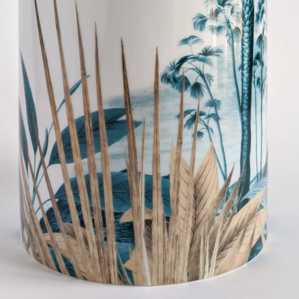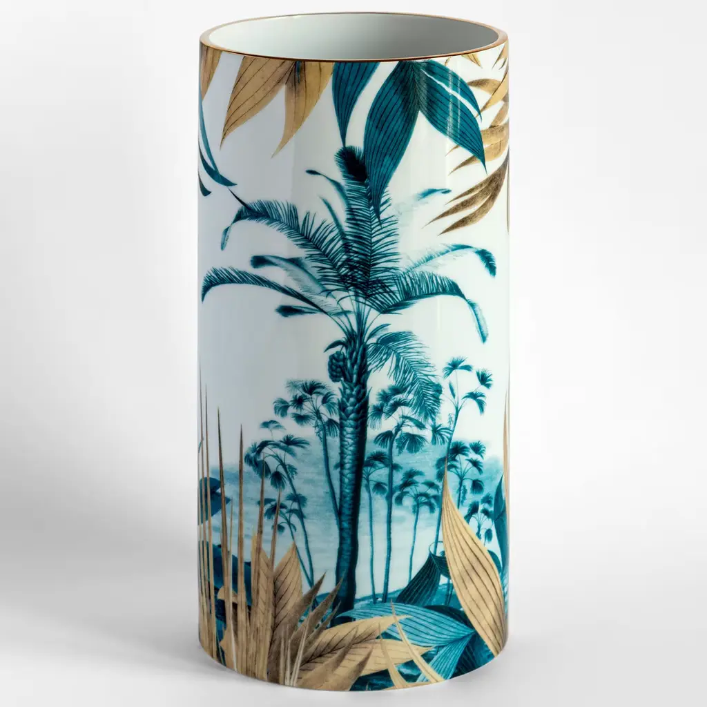 Las Palmas Porcelain Cylindrical Vase With Palm And Leaves