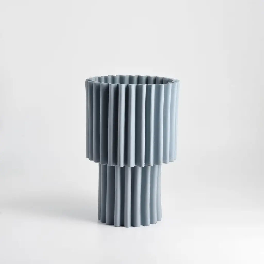 Part of the Le Torri Collection, this cerulean-blue vase is a sophisticated earthenware design drawing inspiration from towers' stately volumes. An intense wavy design shapes its silhouette, resulting in a captivating interplay between lights and shadows that further underlines its sculptural character. The piece takes shape in an artisan mold before being finished by hand.