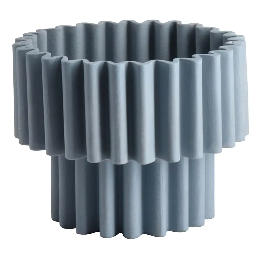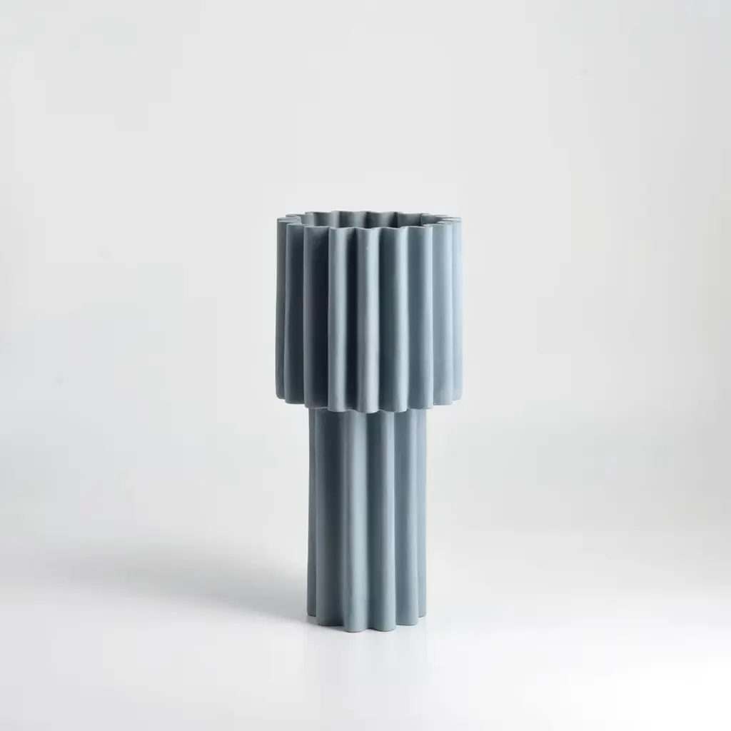 The stately silhouette of this handcrafted earthenware vase hued in sophisticated cerulean blue was inspired by towers. Aptly part of the Le Totti Collection, it is distinguished by intriguing convexities and concavities that ceaselessly alternate to obtain its wavy surface where lights and shadows interact. Molded with the casting method and finished by hand, it is a singular piece.