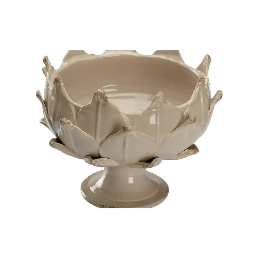 Create a centerpiece for your table by adding a dried arrangement, fruit or decorative orbs to this contemporary bowl. Leaf Vase is a coffee colored glazed porcelain artichoke design with a pedestal base that is adaptable to any design style.