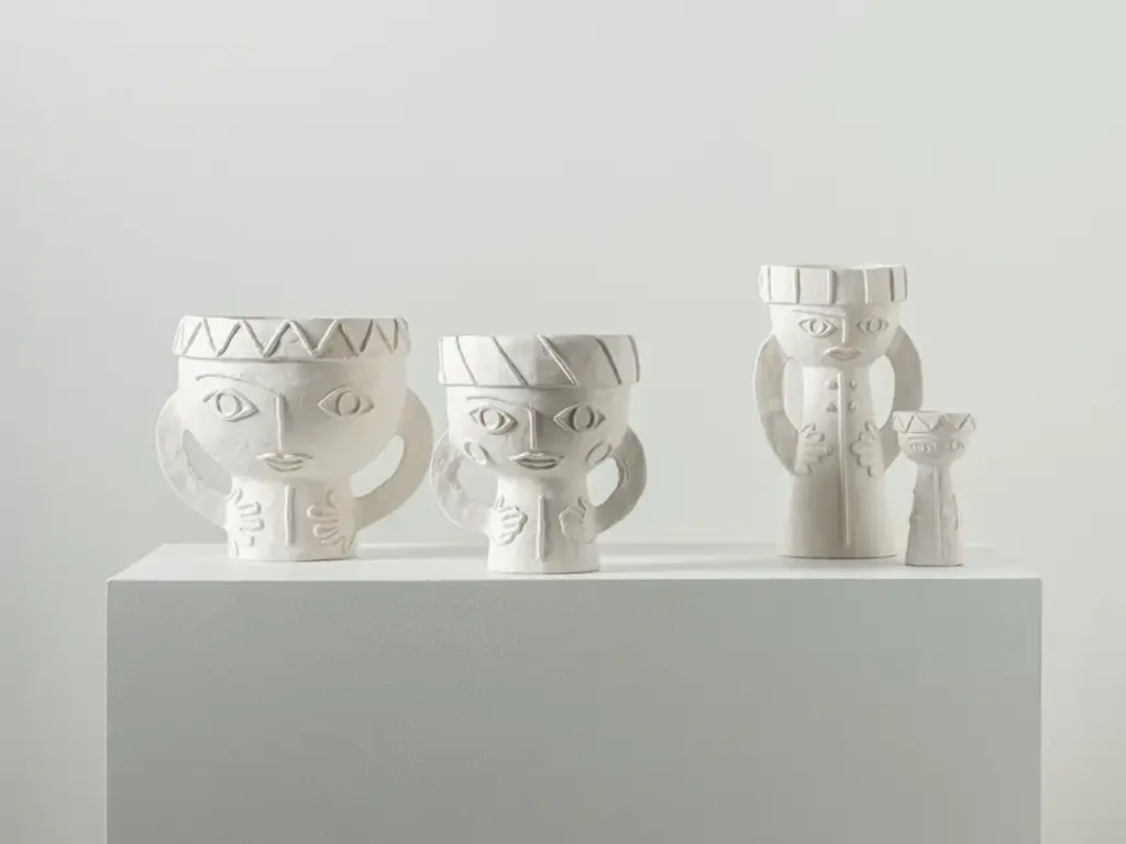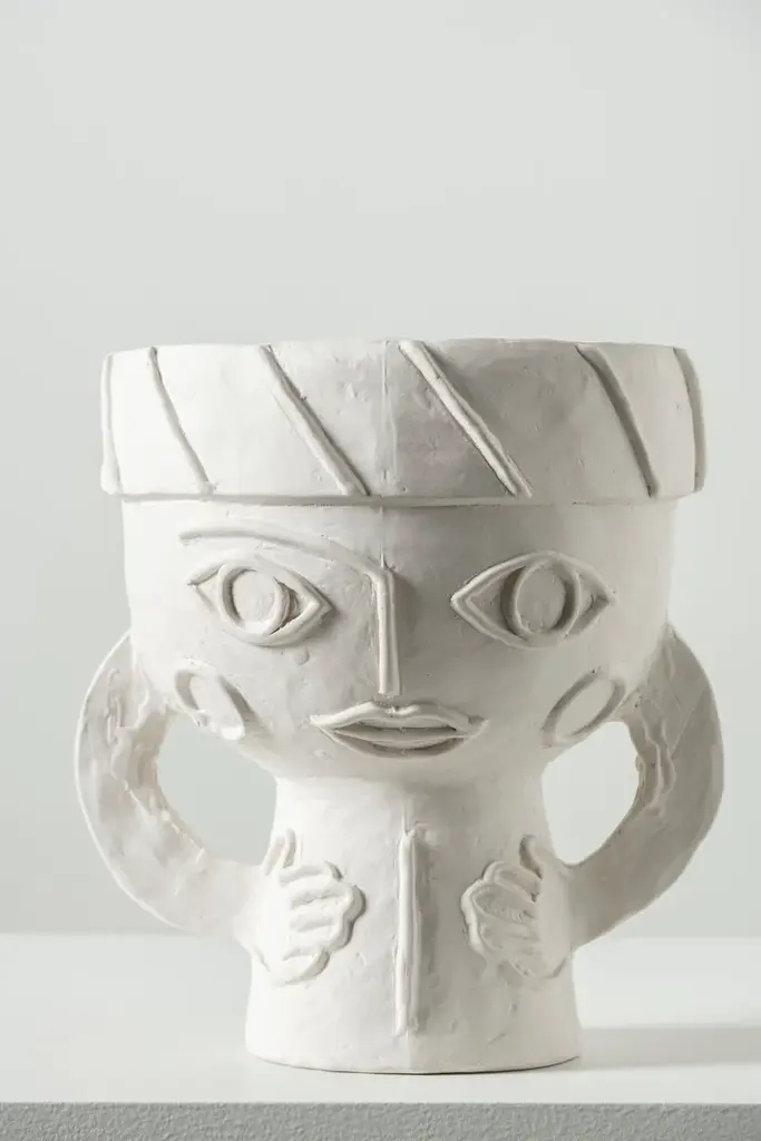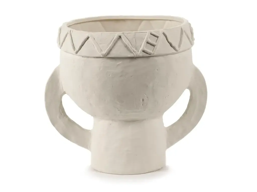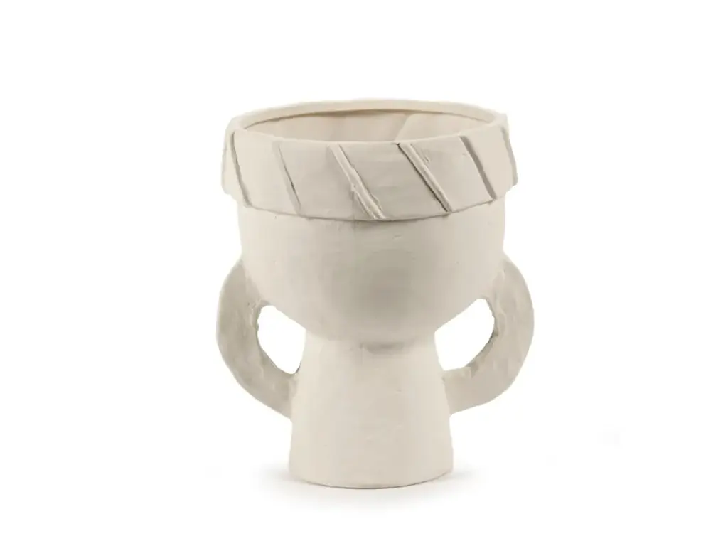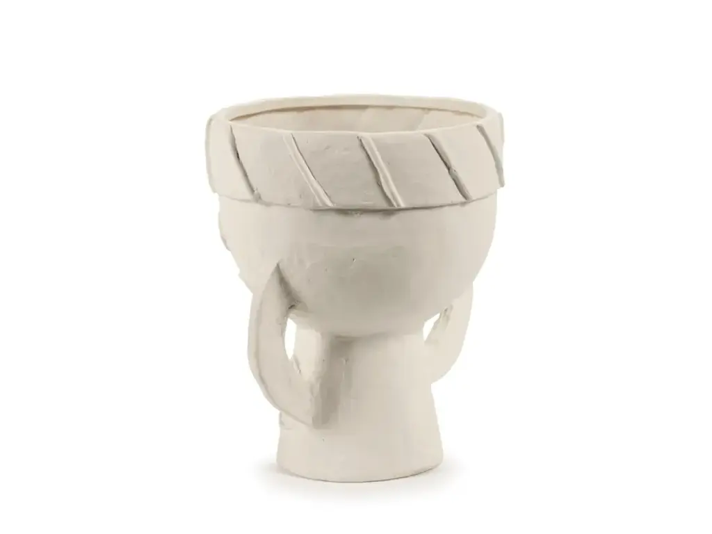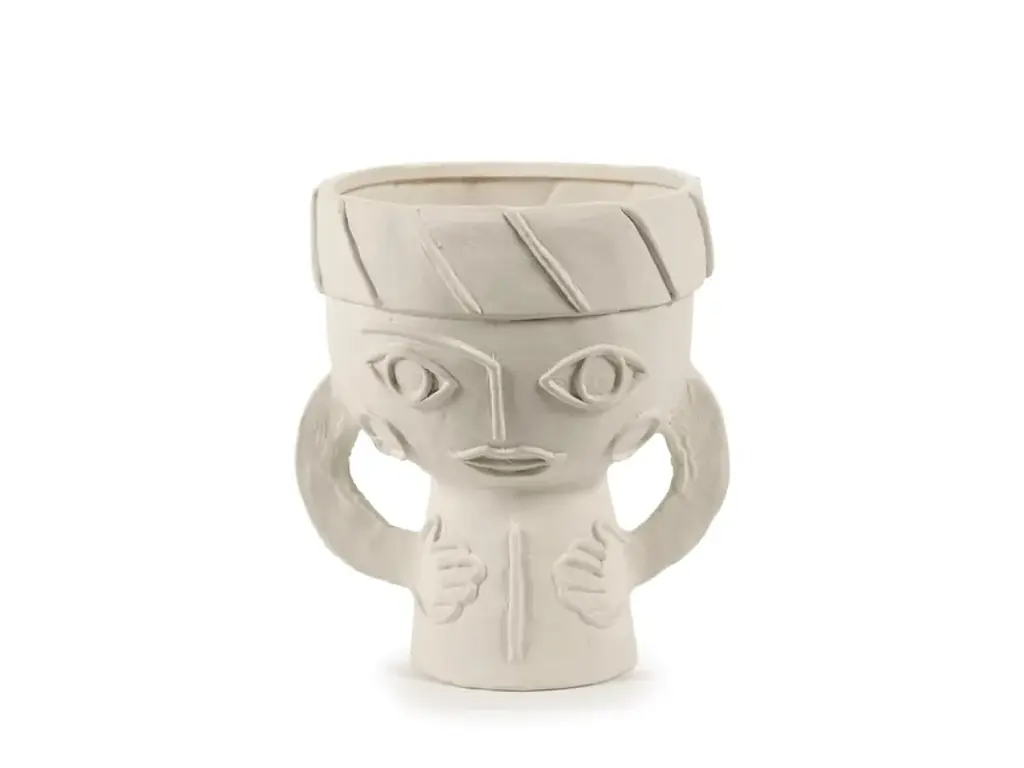 Les Femmes is a round vase made of stoenware.Marie Michielssen gives the white vase a charm by emphasising the hands and eyes of the women in the design. Every detail on the women's headdresses has been worked out with refinement, contrasting with the rougher nature of the chamotte clay. A subtle transparent matte glaze carefully coats the inside and the bottom of the vases. The white vase reflects Marie Michielsson's design style, in which the hands and eyes of women are central. With an eye for perfection, the women's headdresses and clothing are detailed, contrasting with the rougher finish of the chamotte clay. The inside and the bottom of the vases are coated with a transparent matte glaze.Eclectic, a world full of wonderful extremes based on a well-thought-out structure. That is the first thing that comes to mind for the accessories collection of Marie Michielssen. Serax ’s resident designer likes variety, both in style and in her use of materials and colours. From papier-mâché through concrete to porcelain, cheerfully coloured or in muted natural colours, inspired by constructivism or by the earth in its most rudimentary form, each collection is completely different.