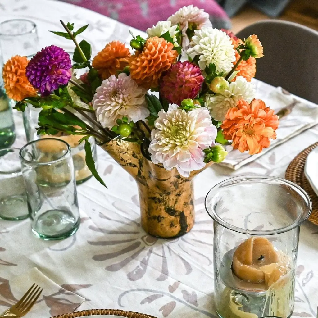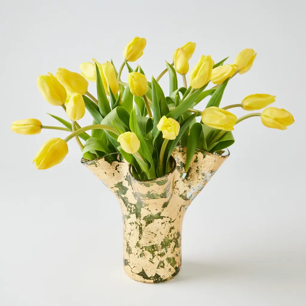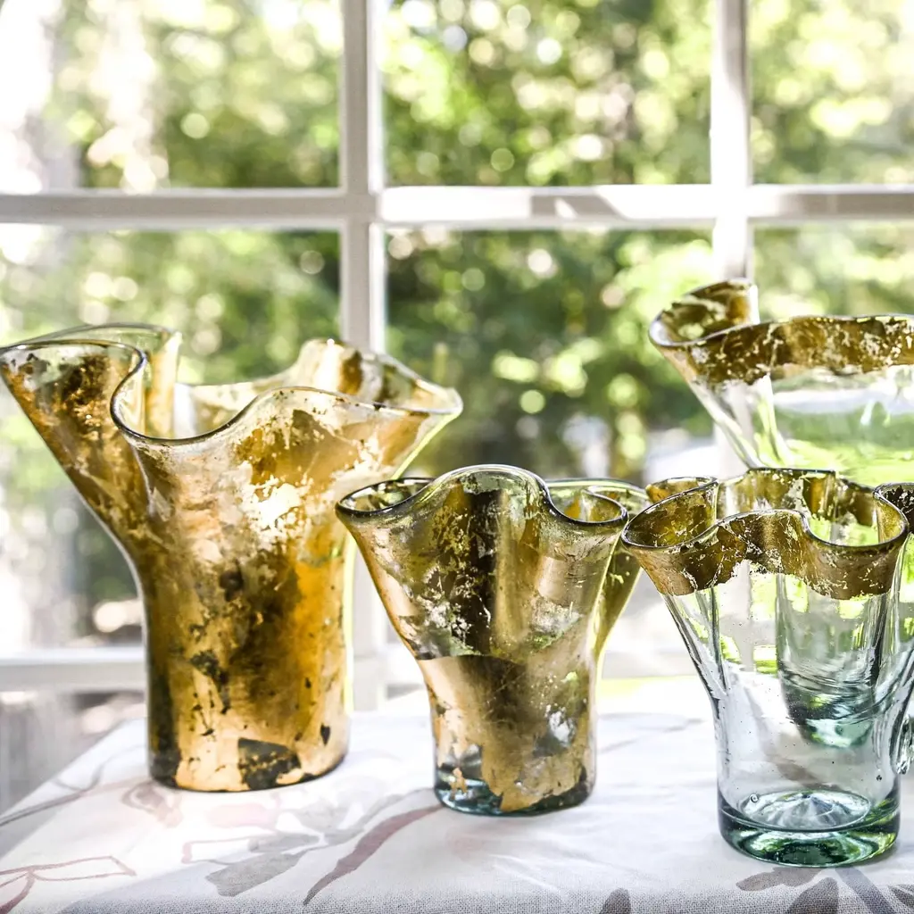 Imagine Mother Nature got a glow-up with actual 14K gold—because that’s this vase. Hand-blown from recycled glass in San Miguel de Allende, it's a stunning marriage of eco-conscious craftsmanship and straight-up elegance. The rich organic curves and generous size make it a perfect throne for your drippy florals, cascading like art for your shelves.