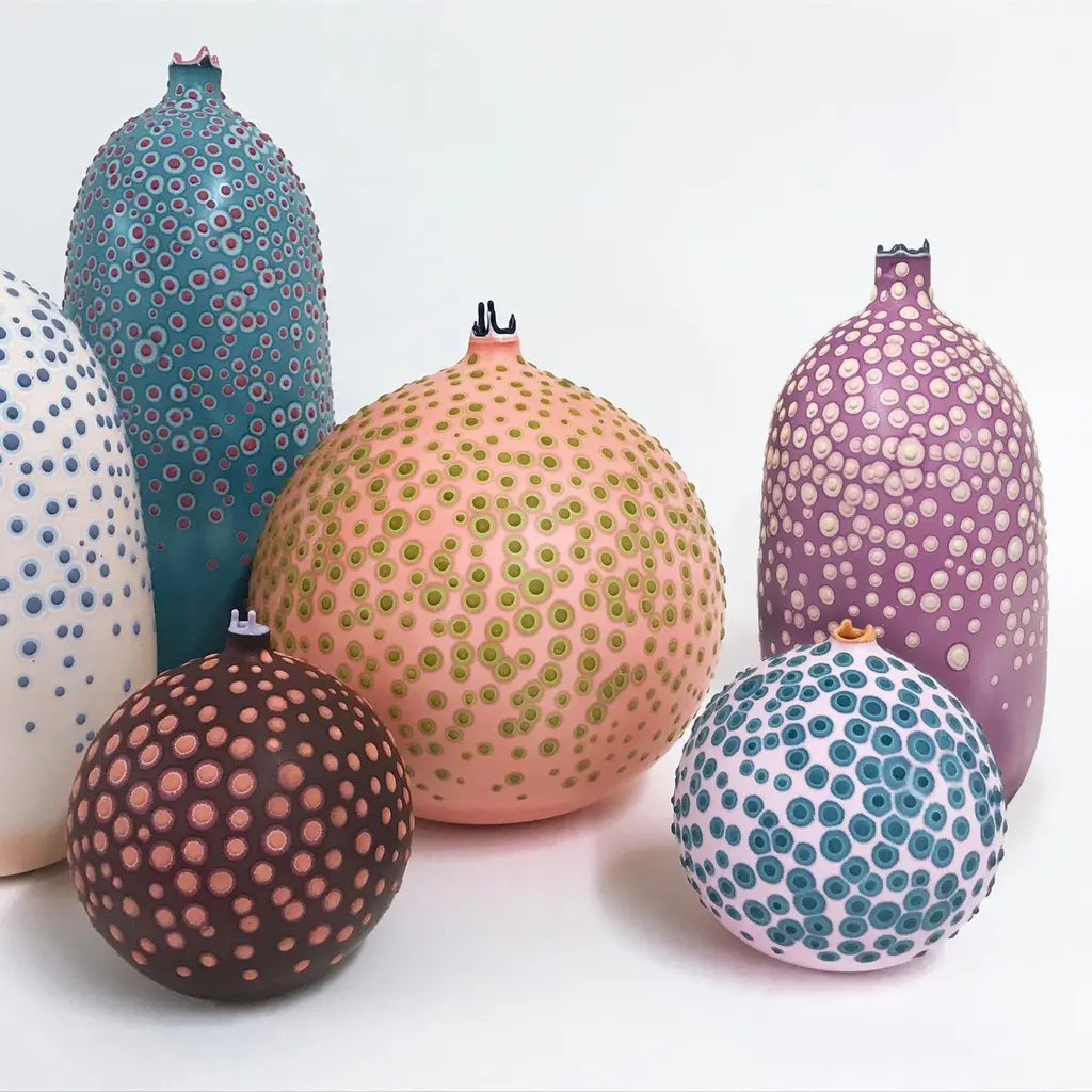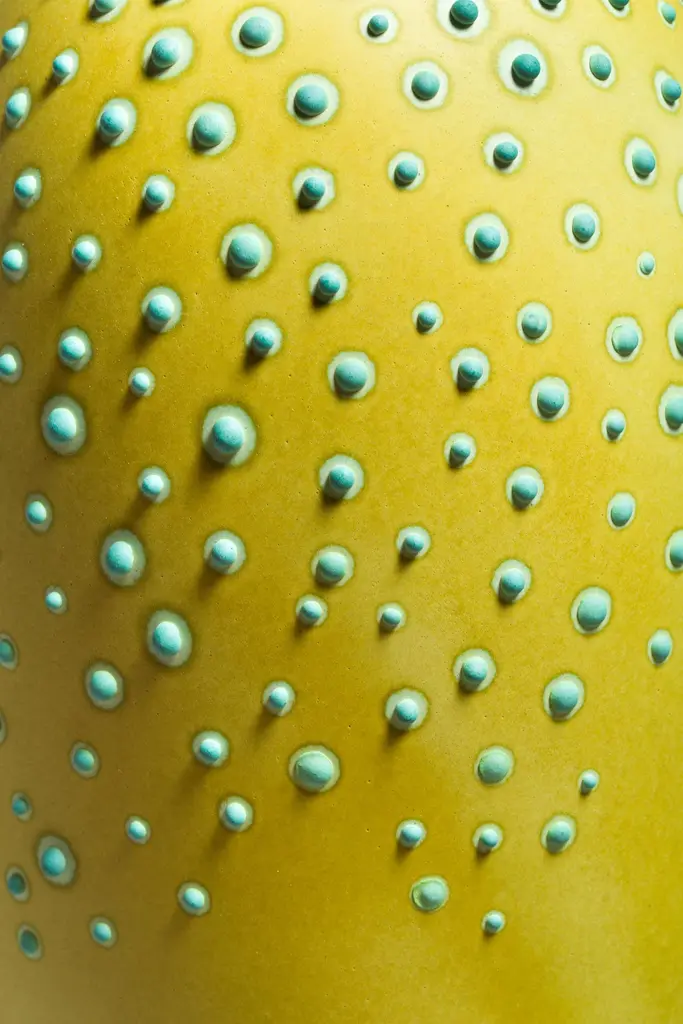 Lichen Huxley vase by Elyse GrahamDimensions: W 14 x D 14 x H 25.5 cmMaterials: Plaster, ResinMOLDED, DYED, AND FINISHED BY HAND IN LA. CUSTOMIZATIONAVAILABLE.ALL PIECES ARE MADE TO ORDEROur Microbe Collection is inspired by the unique galaxy of microorganisms living within each of us. We created a technique for dying and stippling each vase that evokes the nature of microbes as they grow and colonize . Each vase is hand-cast with hydrocal plaster inside of a unique balloon shape. The interior of each piece is poured with layers of resin, making it waterproof. Finally, each vase is hand-dyed with custom mixed pigments and finished with a unique pattern of dyed plaster protuberances. The exterior of each vase is sealed with a UV resistant acrylic coating. These vases are all handmade and will vary slightly in shape, size, color and pattern.Founded in 2014 and based in Los Angeles, the Elyse Graham Studio is a place where unusual materials and experimental processes are implemented to create a melding of art and object. We design by making—with an emphasis on capturing the unique properties of the materials we use through exploration and innovation. Each piece we make is non-repeating and completely individual. We have intentionally designed every process we use — from how we mix our colors to how we cast our forms to highlight and celebrate the time-based, made by hand quality of our work. All of our pieces require a specific kind of care and attention at every level of production. At the core of our studio is our endless fascination with inviting the unknown into our work and exploring our passion for creating pieces that tell a story— about the materials they are made of, the artists who make them and the homes they live in. Each piece is a journey, come along with us.MEET OUR TEAMElyse Graham is the founder and creative director of the studio. Driven by Elyse’s unique vision of building a studio that fosters and emphasizes connection, play, and experimentation (of people, processes, and in turn the objects created and shared) our small team works closely and collaboratively on each project. Elyse received a BA in sculpture and semiotics at Brown University. After years of making sculpture and running a business in jewelry design, Elyse decided to merge her separate practices and redirect her attention toward collectible design in 2013. The creative trajectory of the studio is heavily influenced by Graham’s background in fine art, specifically her interest in process-driven and material-based artwork. The studio’s vocabulary of shapes, patterns, and forms comes from a lineage of unconventional processes Graham has developed and built for working with plaster and resin. Graham shares her studio as well as her home with her husband, Lewis Mauk and their daughter, Eero. Miller Robinson is head of our production department. From pigmenting and casting materials for all of our products in plaster and resin to graphic and production design, they wear many hats in our studio. Miller joined our team in 2014 and has been an integral part of designing many of our experimental processes that have lead to the creation of our unique MetaMATERIAL. Like Elyse, Miller has a background in material and process-oriented making, which led to an instant connection and collaborative understanding between the two. Miller received their BFA from Otis College of Art and Design with a focus on painting, installation, performance, and writing. Their individual art practice focuses on the preservation and potentialities of underrepresented histories and encompasses objects, garments, actions, tattooing, and books. Their personal work has been exhibited in Los Angeles at the Southwest Museum, Los Angeles Municipal Art Gallery, Heritage Square Museum, and with Los Angeles Contemporary Exhibitions (LACE), as well as HORESEANDPONY Fine Arts in Berlin.Lewis Mauk is our studio and operations engineer. Working on facilities and production design as well as engineering and leading all of our large-scale constructions and installations, Lewis’ unique set of technical skills gives form and structure to our studio’s unconventional ideas and processes. Lewis has been working behind-the-scenes since the creation of the studio but joined our team full-time in 2020. Consistent with the rest of our team, Lewis has a background in process-driven fine art and has extensive training in woodworking, printmaking, and photography. He received a MFA from CalArts and has worked across the fields of education and fabrication. Lewis’ combined interest in the creation of personal archives mixed with his commitment to sustainable life practices, has brought a focus and important emphasis on designing studio projects and processes that imagine ways to reduce and reuse studio material fragments.
