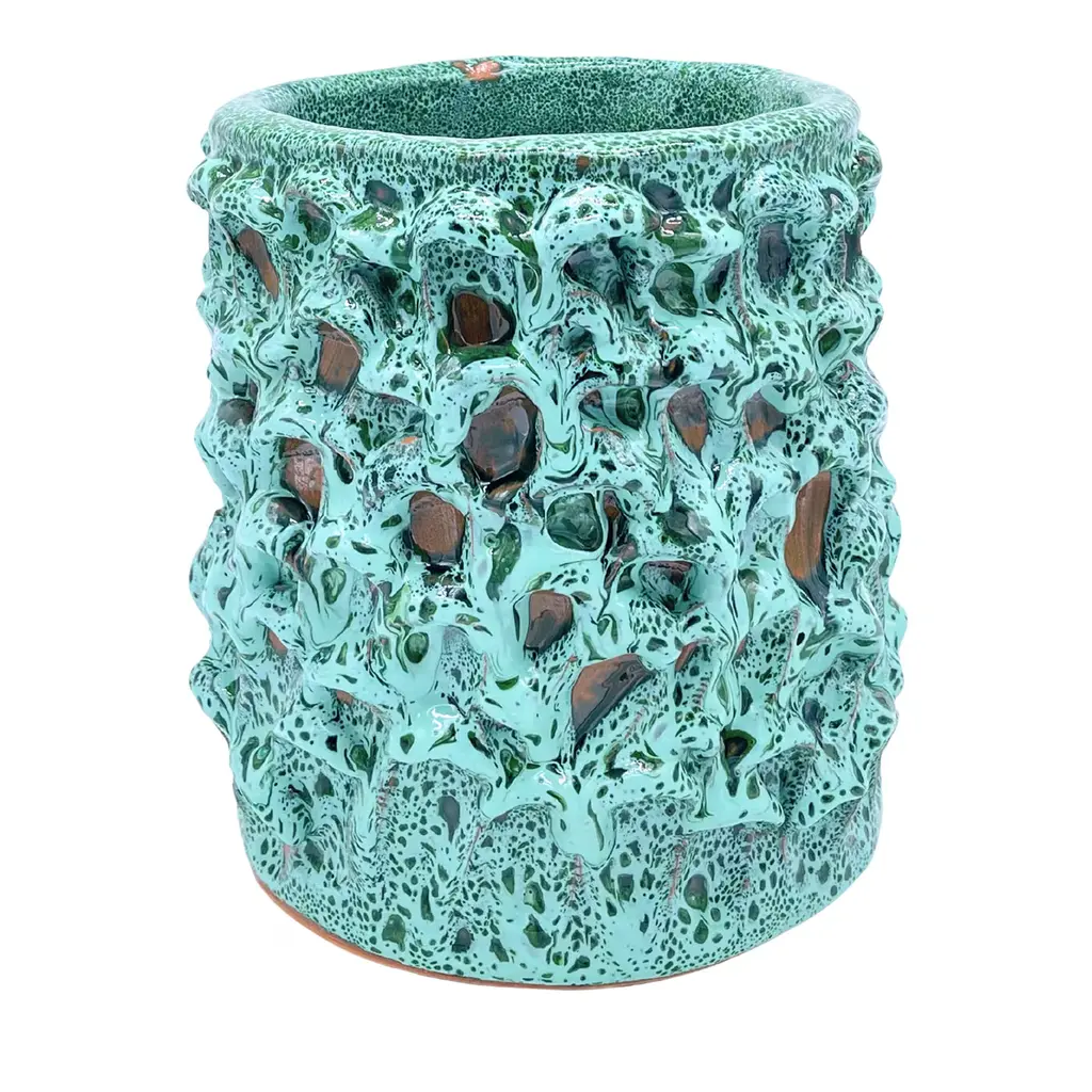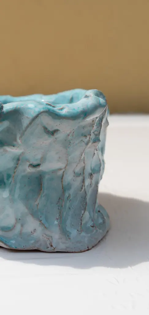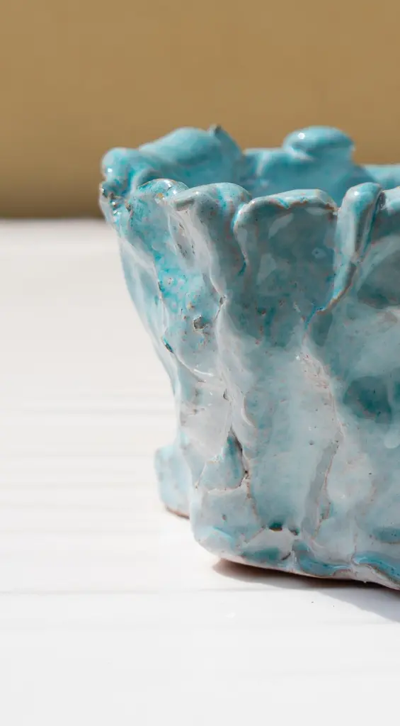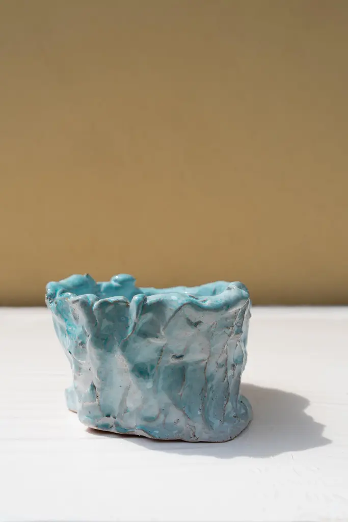 Light blue vase by Daniele GiannettiDimensions: Ø 16 x H 10 cm.Materials: Glazed terracotta. All pieces are made in terracotta from Montelupo, only fired once, then colored by Daniele Giannetti with a white acrylic base, and then a mixture of acrylic medium, water, and pigments. All vases are rigorously made by hand, without the help of any tool, in a way to express the primary connection between matter, which works a signifier and the deeper understanding of the relationship between humans and nature. These handmade objects subsequently become a new starting point for research into colors and pigments, using traditional materials to create new techniques.Daniele Giannetti is an artist with a background in product design and interior design.
