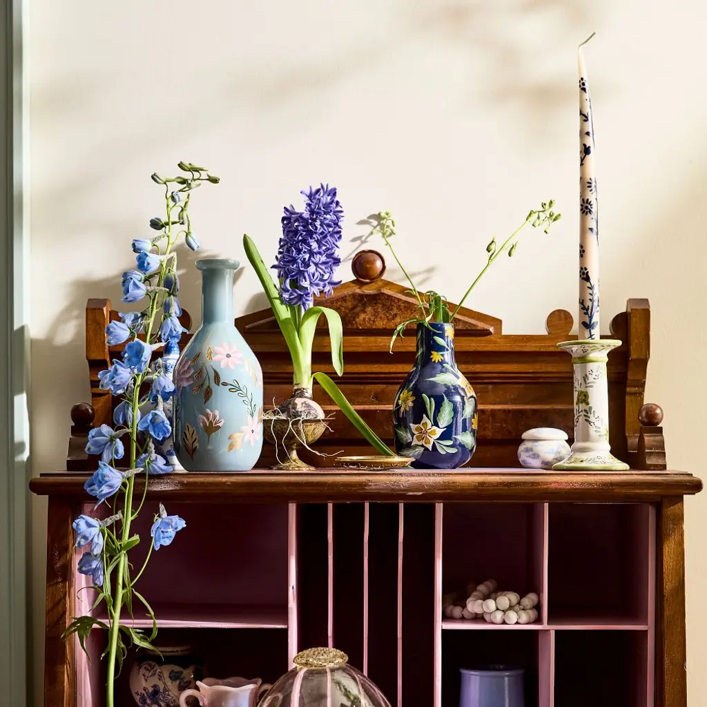 Lasting beauty. Hand-painted by Indian artisans on recycled soda glass, these vases revive traditional craft techniques. Mass them together for a curated display.