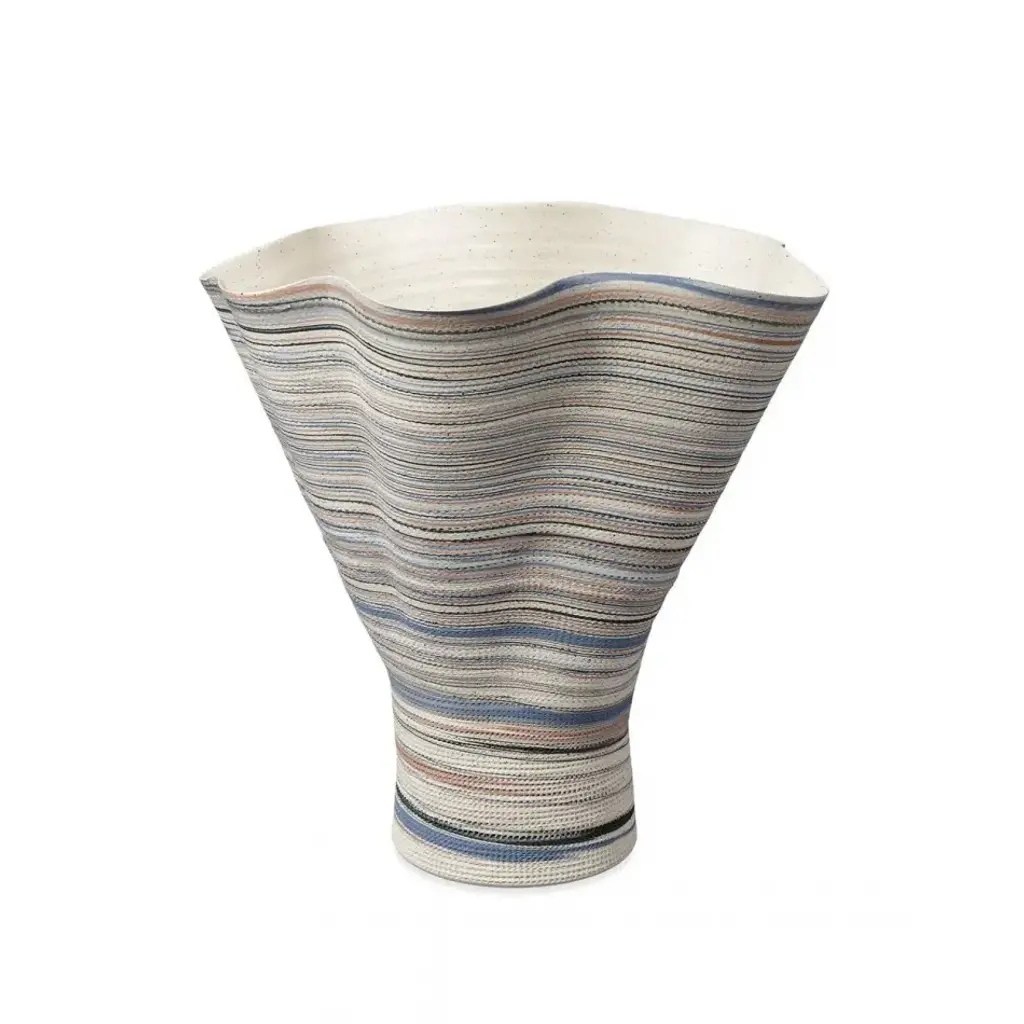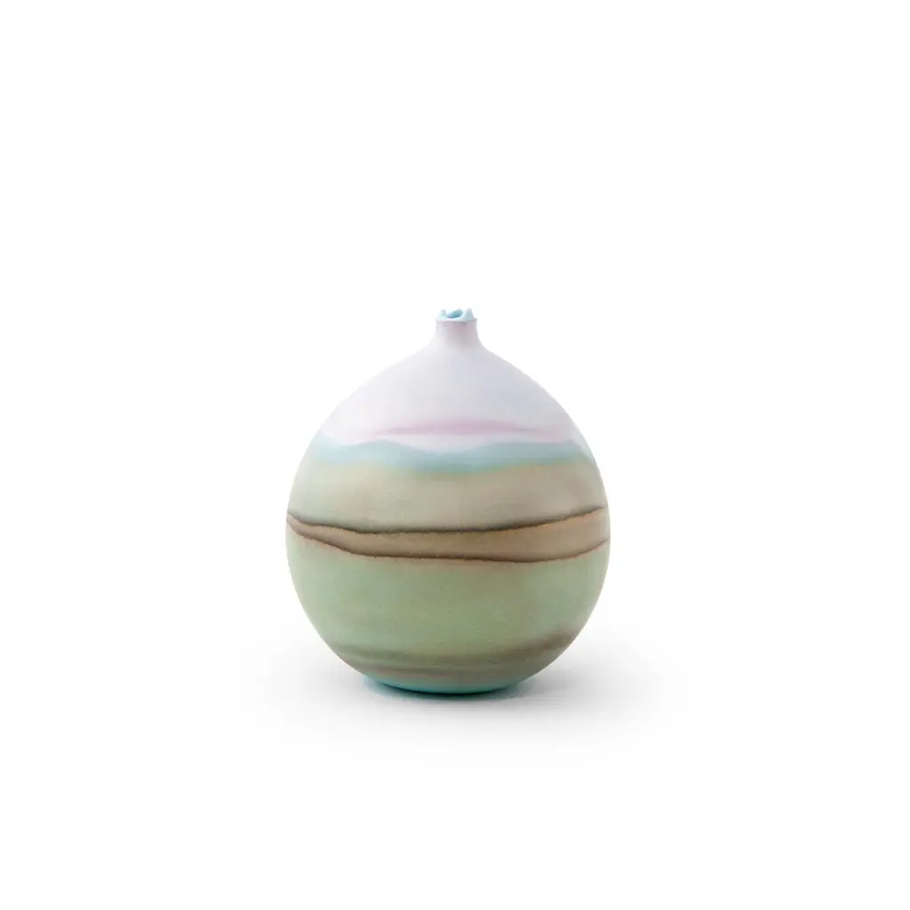 Lilac and Sage Pluto Vase by Elyse GrahamDimensions: W 13 x D 13 x H 14 cmMaterials: Plaster, ResinMOLDED, DYED, AND FINISHED BY HAND IN LA. CUSTOMIZATIONAVAILABLE.ALL PIECES ARE MADE TO ORDERThis collection of vessels is inspired by striated landscapes caused by glacial erosion as well as the beautiful colors found in foliated metamorphic rock.Though often thought to be either ceramic or glass, these pieces are neither. Graham has designed a unique process for creating these pieces. Each drip vase is hand-cast with hydrocal plaster inside of a unique balloon shape. The interior of each piece is poured with layers of resin, making it waterproof. Finally, each drip vase is hand-dyed by the artist with layer after layer of custom mixed pigments and then sealed with a UV resistant acrylic coating. These vases are all handmade and will vary slightly in shape, size, color and pattern.MEET OUR TEAMElyse Graham is the founder and creative director of the studio. Driven by Elyse’s unique vision of building a studio that fosters and emphasizes connection, play, and experimentation (of people, processes, and in turn the objects created and shared) our small team works closely and collaboratively on each project. Elyse received a BA in sculpture and semiotics at Brown University. After years of making sculpture and running a business in jewelry design, Elyse decided to merge her separate practices and redirect her attention toward collectible design in 2013. The creative trajectory of the studio is heavily influenced by Graham’s background in fine art, specifically her interest in process-driven and material-based artwork. The studio’s vocabulary of shapes, patterns, and forms comes from a lineage of unconventional processes Graham has developed and built for working with plaster and resin. Graham shares her studio as well as her home with her husband, Lewis Mauk and their daughter, Eero. Miller Robinson is head of our production department. From pigmenting and casting materials for all of our products in plaster and resin to graphic and production design, they wear many hats in our studio. Miller joined our team in 2014 and has been an integral part of designing many of our experimental processes that have lead to the creation of our unique MetaMATERIAL. Like Elyse, Miller has a background in material and process-oriented making, which led to an instant connection and collaborative understanding between the two. Miller received their BFA from Otis College of Art and Design with a focus on painting, installation, performance, and writing. Their individual art practice focuses on the preservation and potentialities of underrepresented histories and encompasses objects, garments, actions, tattooing, and books. Their personal work has been exhibited in Los Angeles at the Southwest Museum, Los Angeles Municipal Art Gallery, Heritage Square Museum, and with Los Angeles Contemporary Exhibitions (LACE), as well as HORESEANDPONY Fine Arts in Berlin.Lewis Mauk is our studio and operations engineer. Working on facilities and production design as well as engineering and leading all of our large-scale constructions and installations, Lewis’ unique set of technical skills gives form and structure to our studio’s unconventional ideas and processes. Lewis has been working behind-the-scenes since the creation of the studio but joined our team full-time in 2020. Consistent with the rest of our team, Lewis has a background in process-driven fine art and has extensive training in woodworking, printmaking, and photography. He received a MFA from CalArts and has worked across the fields of education and fabrication. Lewis’ combined interest in the creation of personal archives mixed with his commitment to sustainable life practices, has brought a focus and important emphasis on designing studio projects and processes that imagine ways to reduce and reuse studio material fragments.