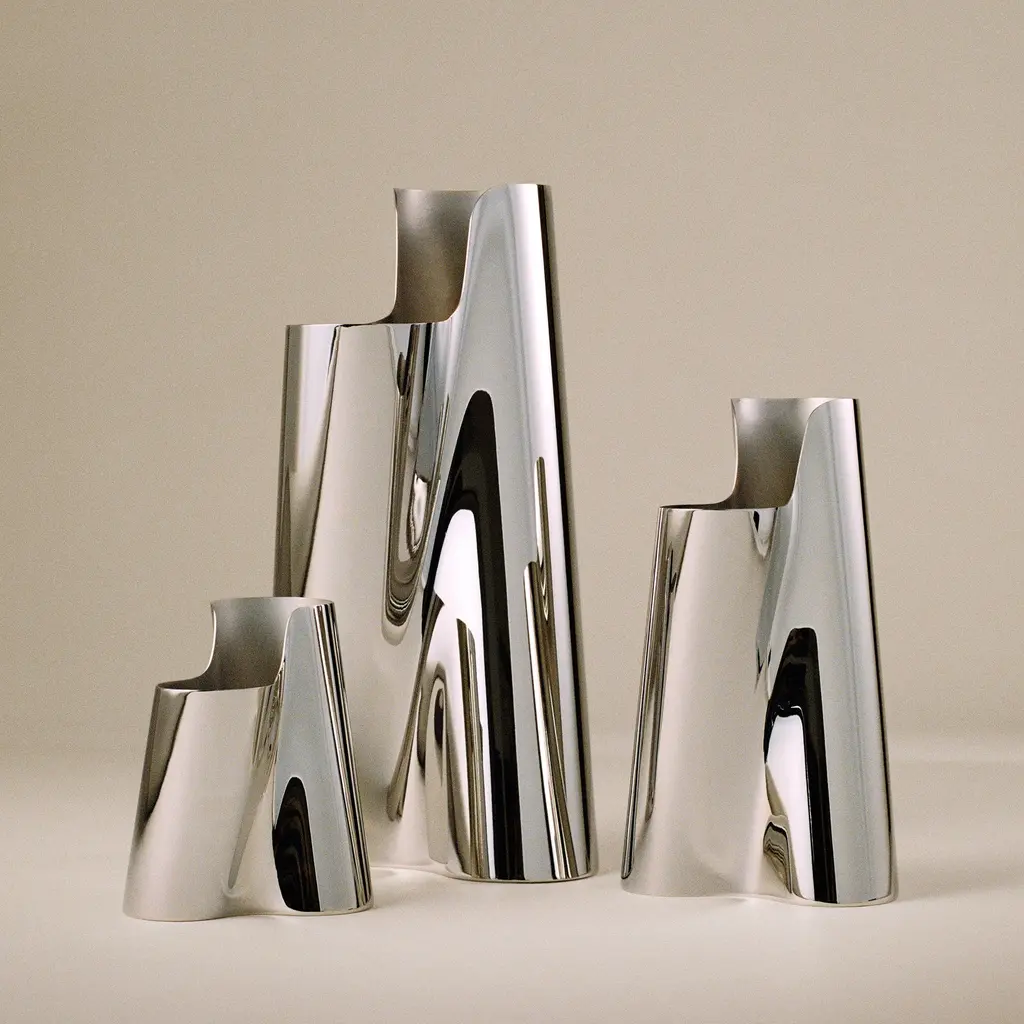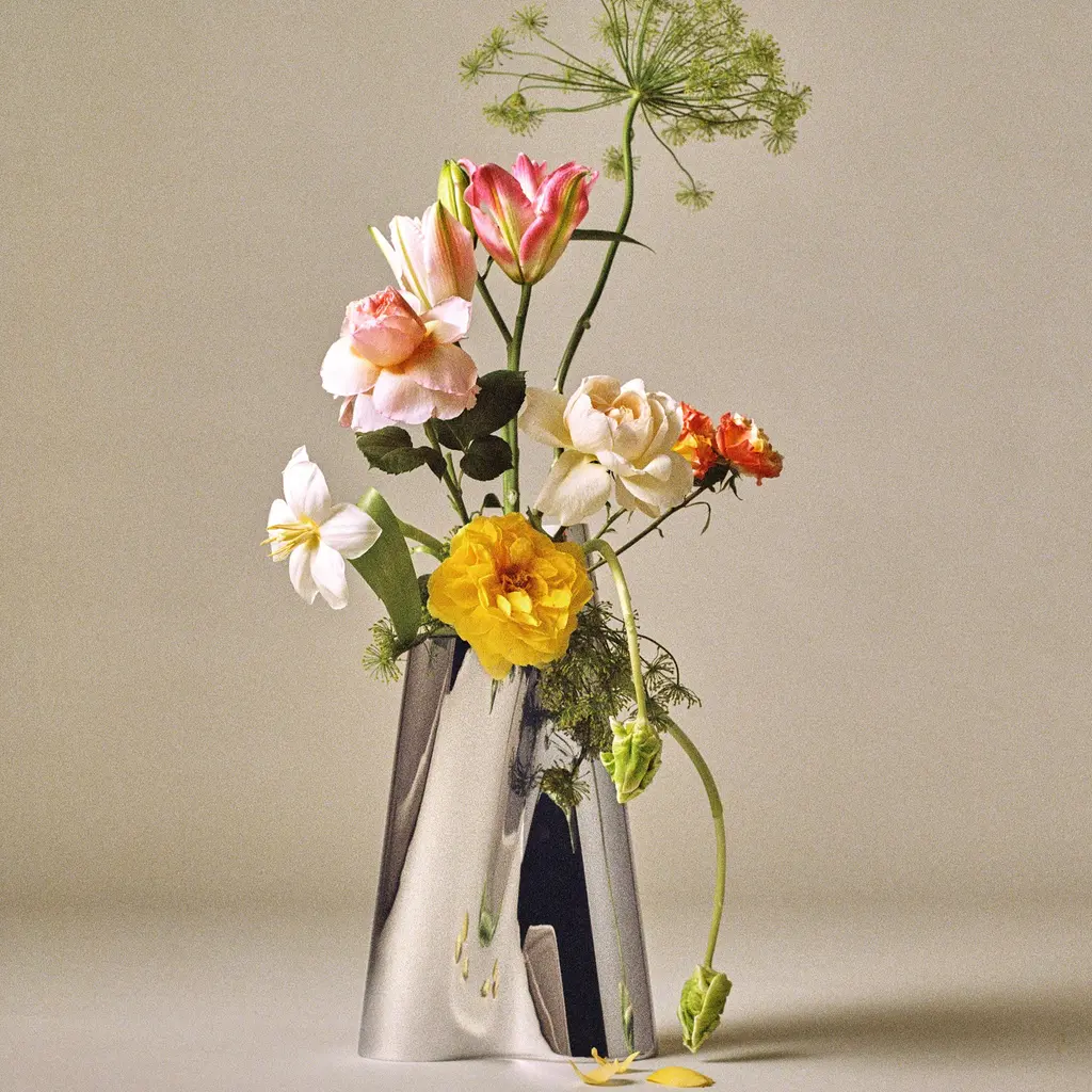 The Lituus Vase from Georg Jensen is a sculptural study in form and reflection, created by Danish designer Anne Boysen. Expertly crafted from hand-polished stainless steel, its elegant form features varying heights and angles that encourage creative floral arrangements. The dynamic structure is thoughtfully designed to support flowers throughout their entire lifespan, ensuring a beautiful and neat look as they change, bringing a touch of contemporary Danish design to any space. Highlights: