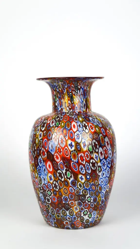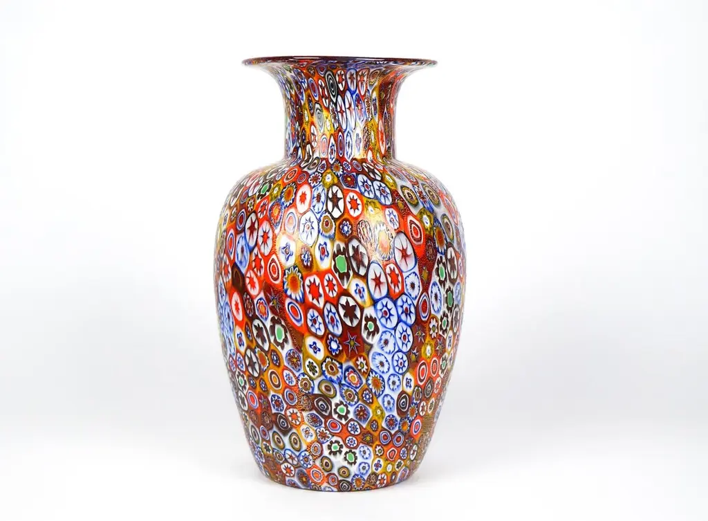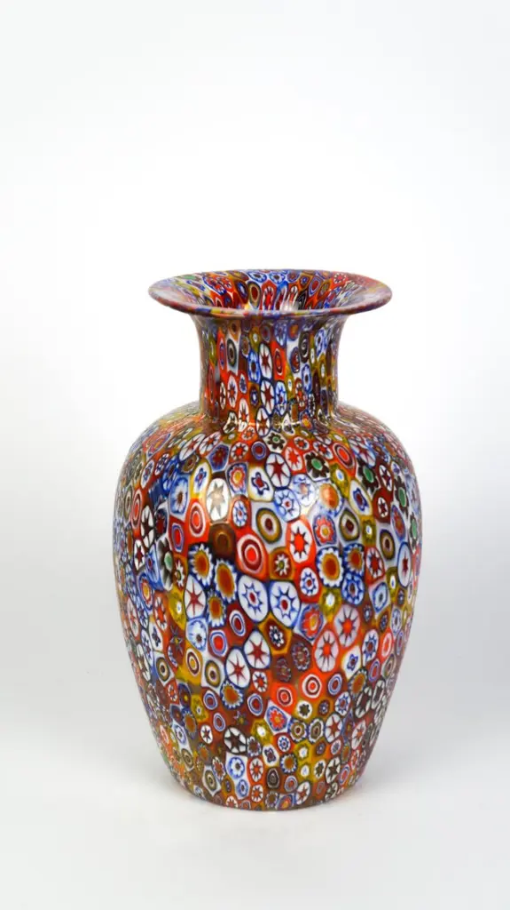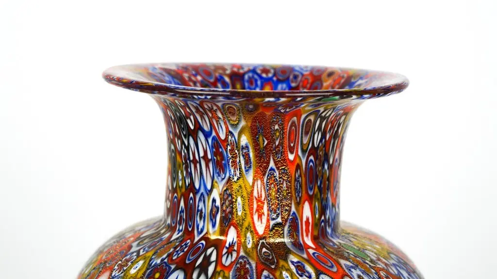 Livio Campanella Mid-Century Modern Murrina Millefiori Murano Glass Vase, 1988s