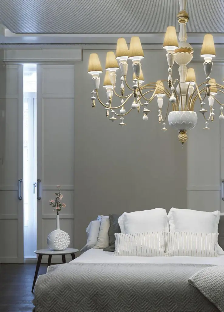 White glossy porcelain vase with accumulation of one by one handmade flowers for home decoration. Contemporary but Classic this sculptural vase is an impressive design statement combining strong graphic elements and organic fluidity in perfect harmony. The white vase with handmade floral appliqué detail is produced in the finest Lladró porcelain body. The floral appliqué is handmade and applied by the most skillful porcelain flower makers. This product is a triumph to the skills Lladró has to offer.