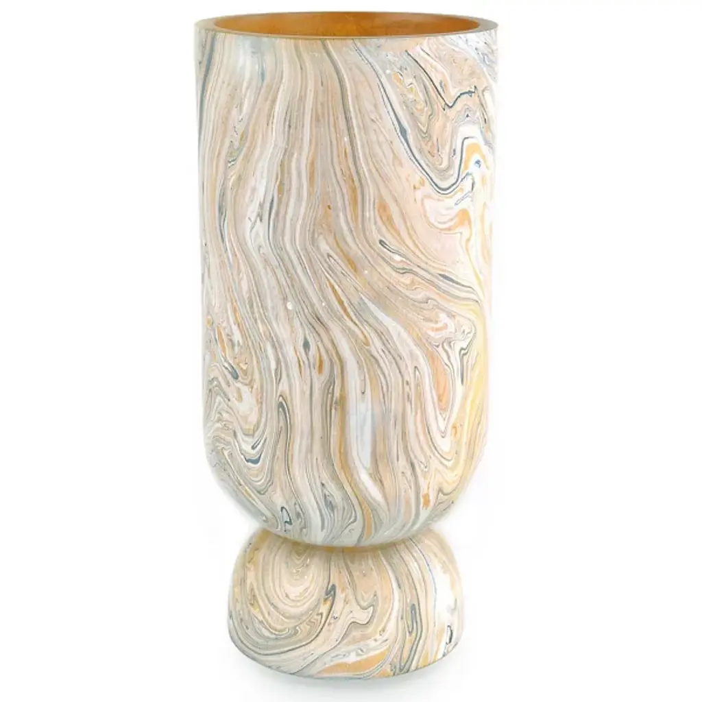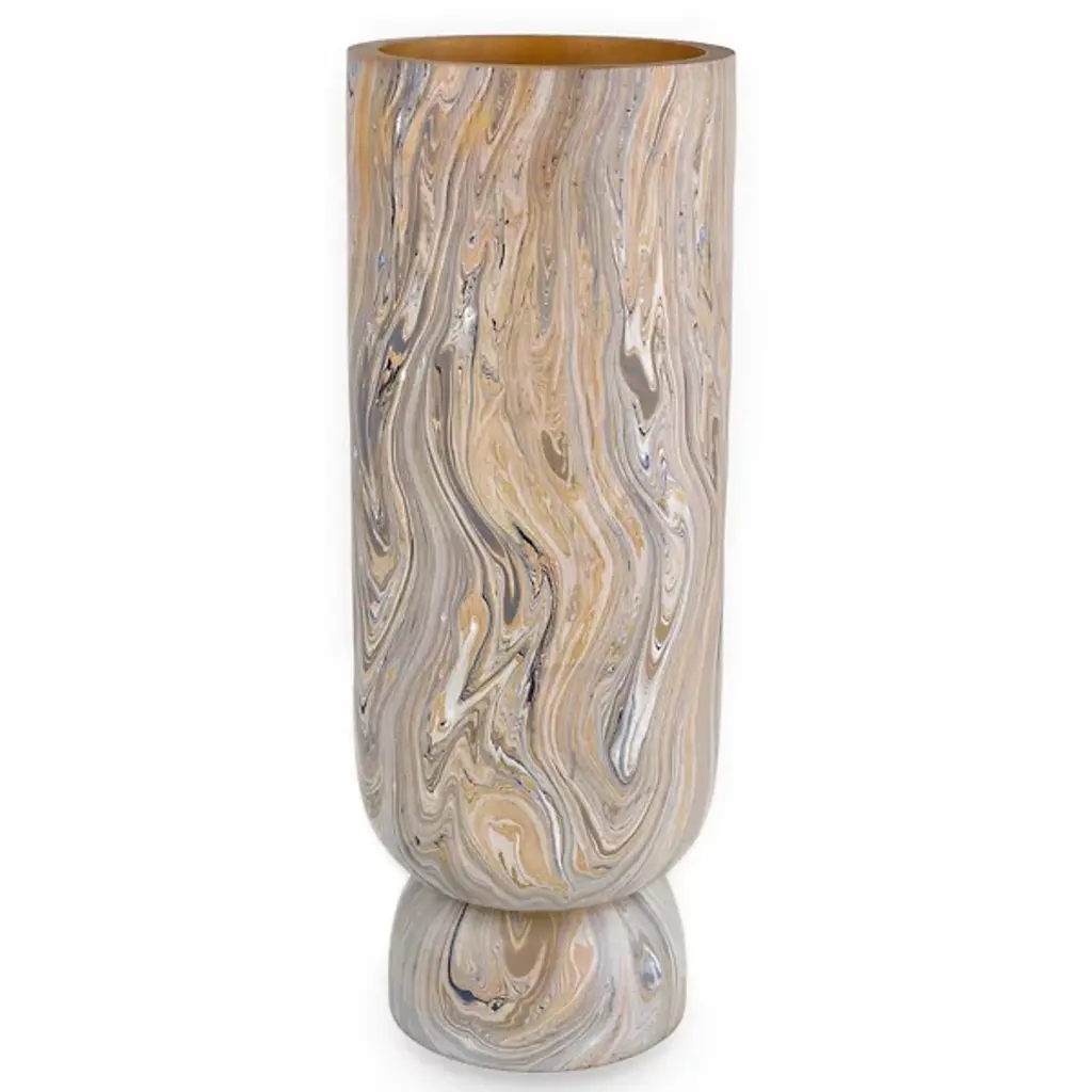 The London Vase Set of 3 from Currey & Company comprises three vases in serene gray and peach hues. Made of wood, swirling hand-painted patterns create a mesmerizing marbleized effect on their surfaces. With a harmonious palette of tan, peach, white, and gray, these decorative accessories exude tactile charm. The dynamic patterning on these multicolored vases lends an element of captivating artistry to any space.