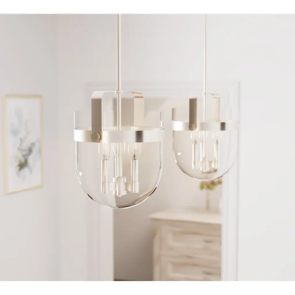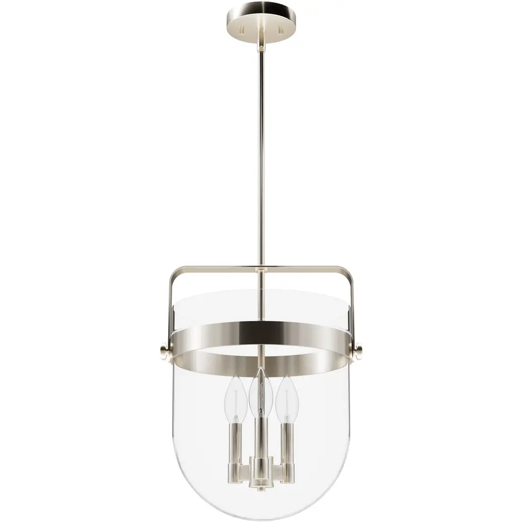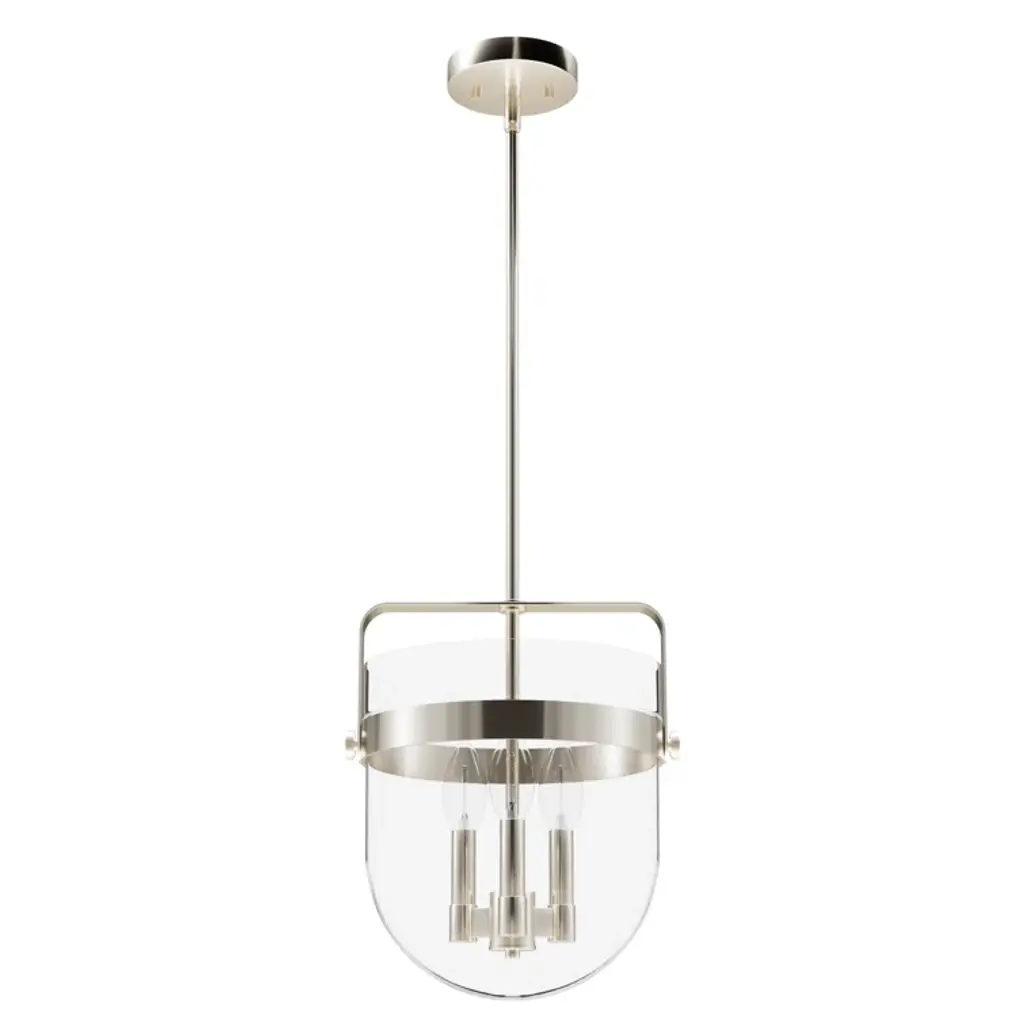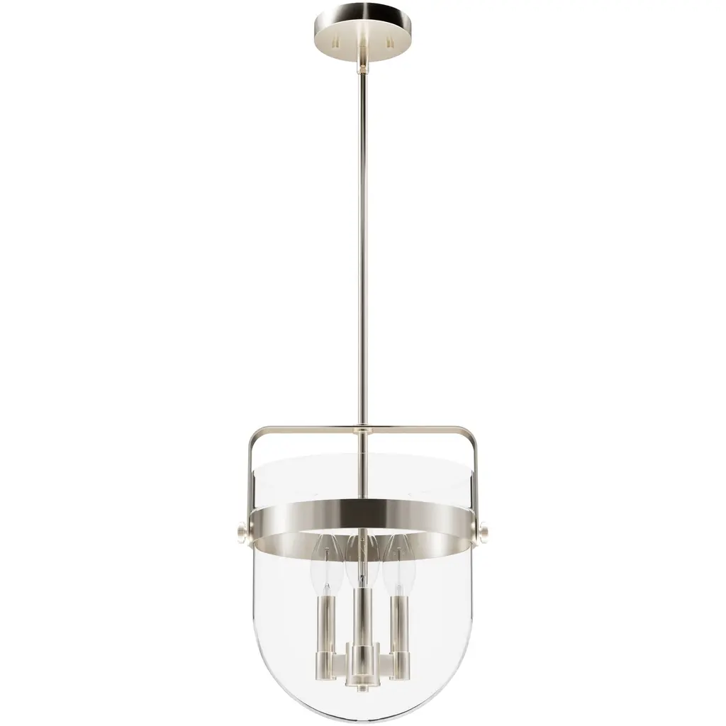 This 3-light pendant brightens any area, such as your dining table or over a kitchen island. Its streamlined silhouette adds a sleek, modern feel to any space. The fixture and the candelabra base are made from aluminum with a striking metallic finish, and it holds three bulbs (sold separately) to give you a soothing ambient glow anywhere. This pendant light's corresponding clear glass shade brings a more traditional vibe. It hangs with the help of a height-adjustable rod and a canopy that's compatible with sloped ceilings. Plus, it works with dimmer switches, moving you effortlessly from day to night.
