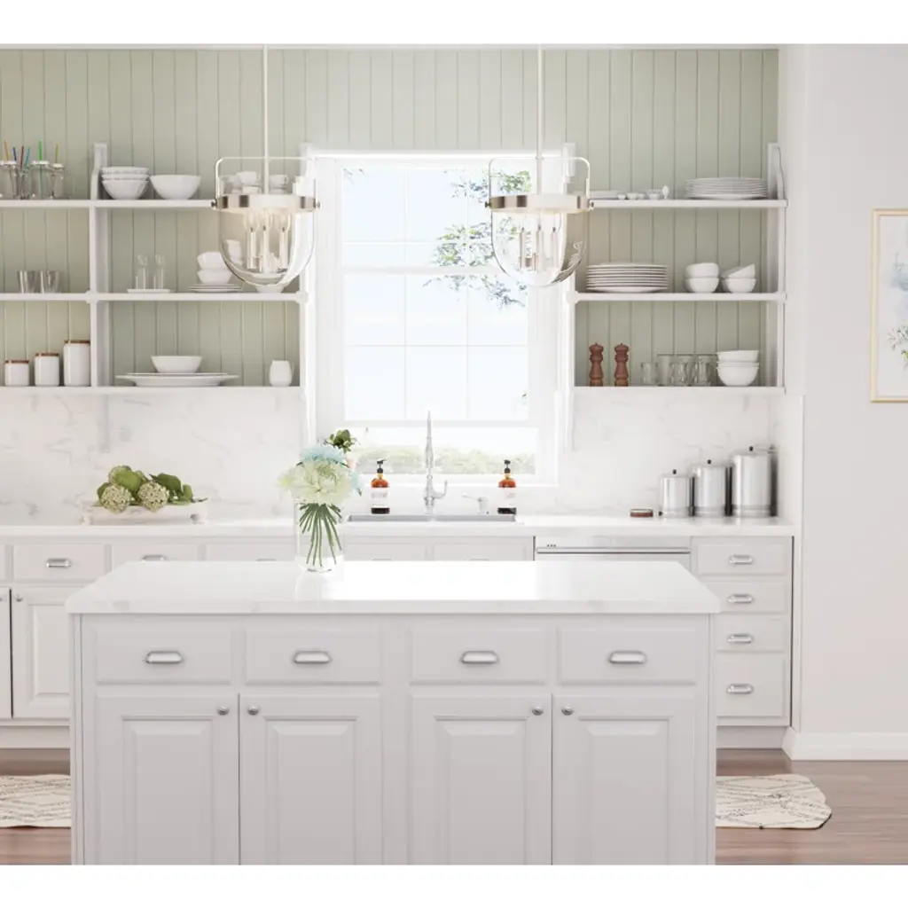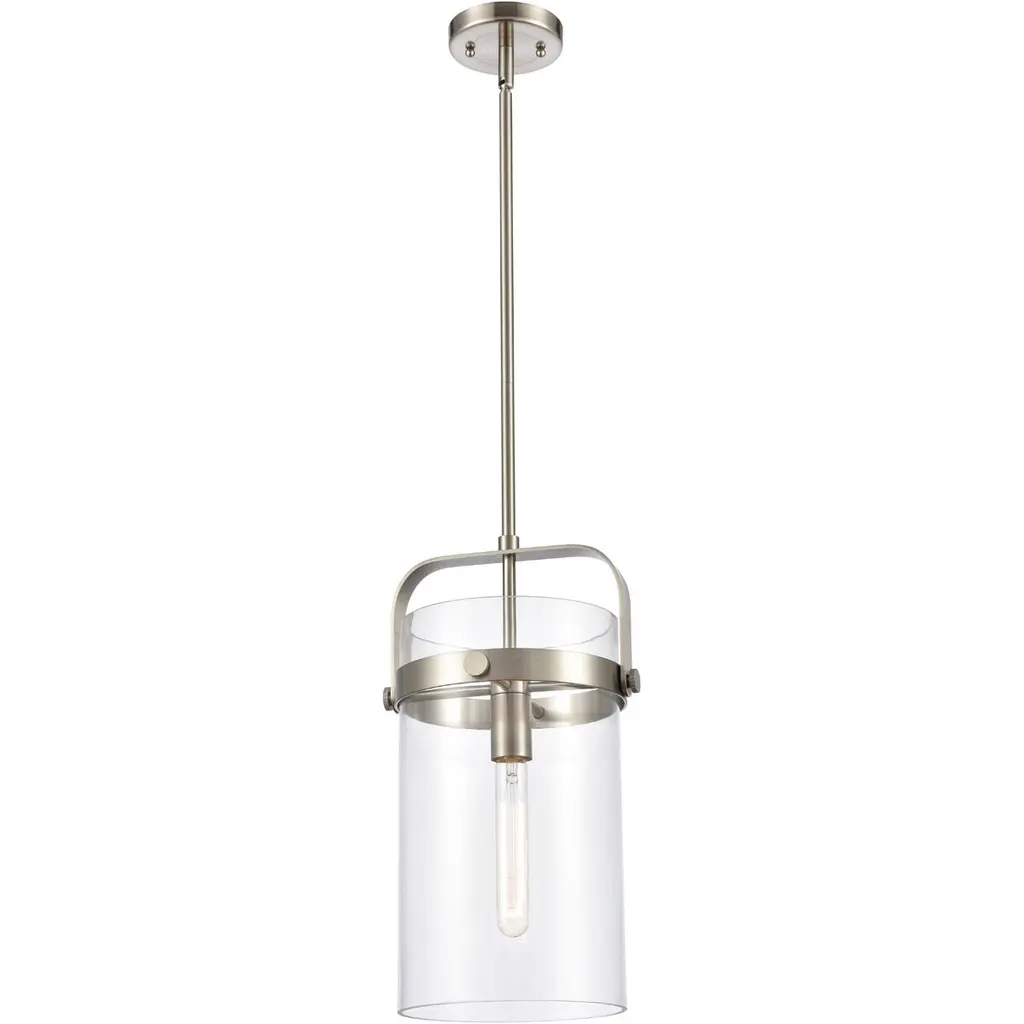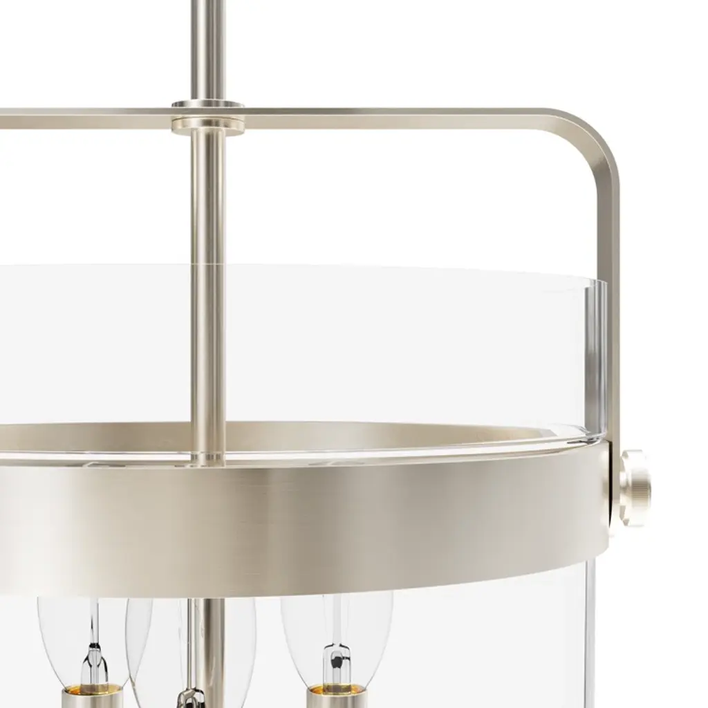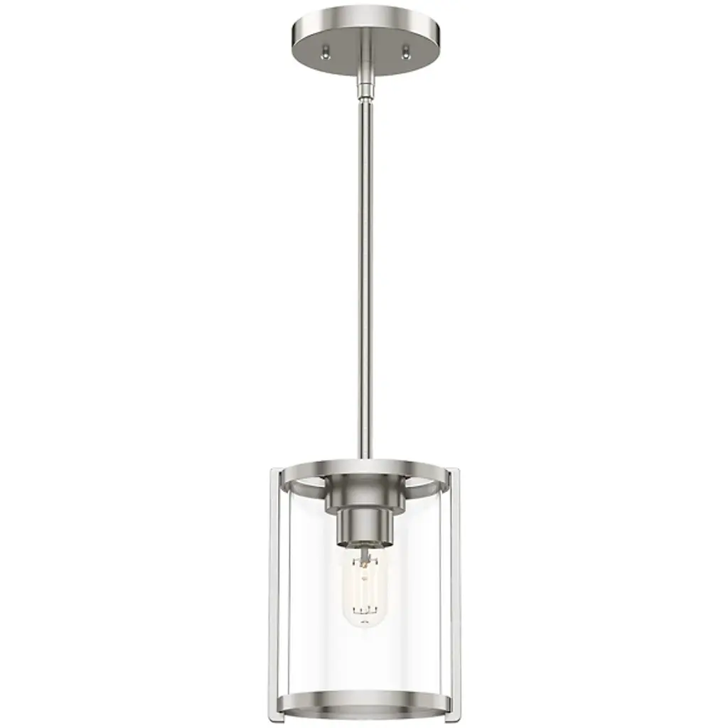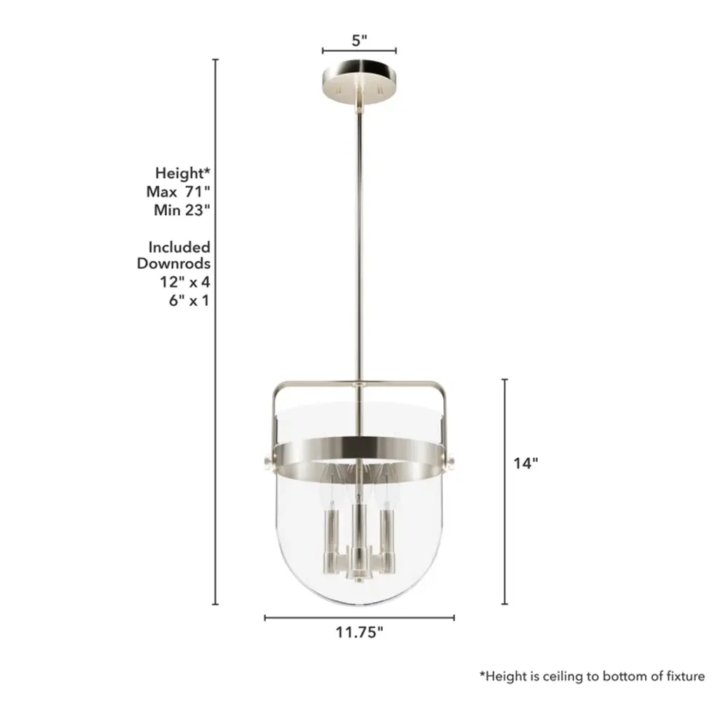 This 3-light pendant brightens any area, such as your dining table or over a kitchen island. Its streamlined silhouette adds a sleek, modern feel to any space. The fixture and the candelabra base are made from aluminum with a striking metallic finish, and it holds three bulbs (sold separately) to give you a soothing ambient glow anywhere. This pendant light's corresponding clear glass shade brings a more traditional vibe. It hangs with the help of a height-adjustable rod and a canopy that's compatible with sloped ceilings. Plus, it works with dimmer switches, moving you effortlessly from day to night.