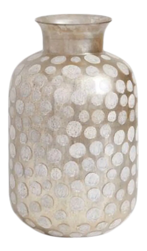 The Small Lottie Dot Vase With an antiqued mirror finish, this dotted vase is beautiful in all its complexity. Generously scaled, it would work well in an entry way or an open concept living space. Antique Mercury 9.75 x 9.75 x 15.5 Care & Use: Interior use. Handwash glass. Avoid detergents or chemicals that might be harmful to finish. New & designer floor samples from one of the hottest To The Trade & Retail Home Furnishings showrooms in the country. Located in Chicago's chic Roscoe Village, Kenneth Ludwig Chicago carries the industries best furniture & accessory brands. Always fresh, always inspiring. Quite often ( due to a discontinued style, fabric or frame ) they must sell off their showroom floor samples. You receive first quality pieces at amazing prices!
