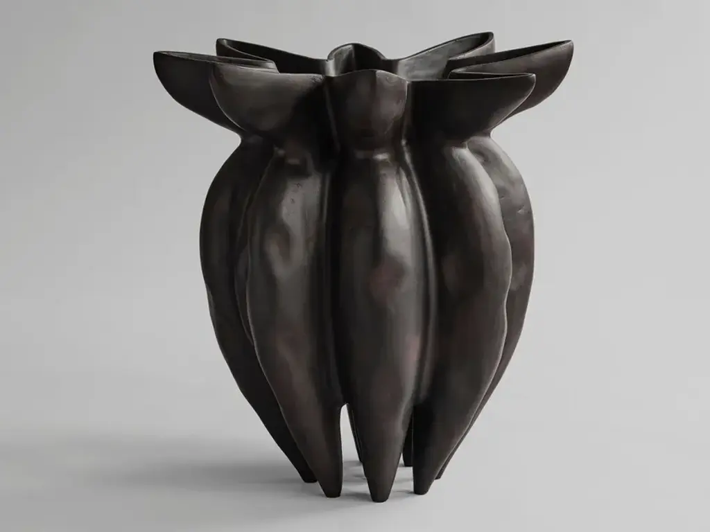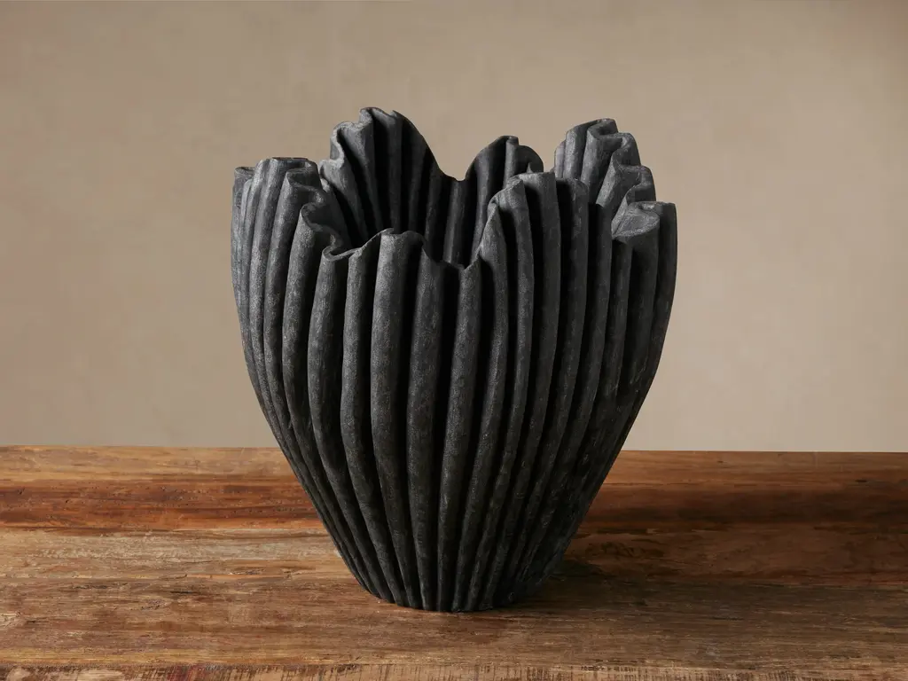Lotus is a fiberglass cement vase. The product is hand-painted twice with a brush to create a layered, brushed color effect.