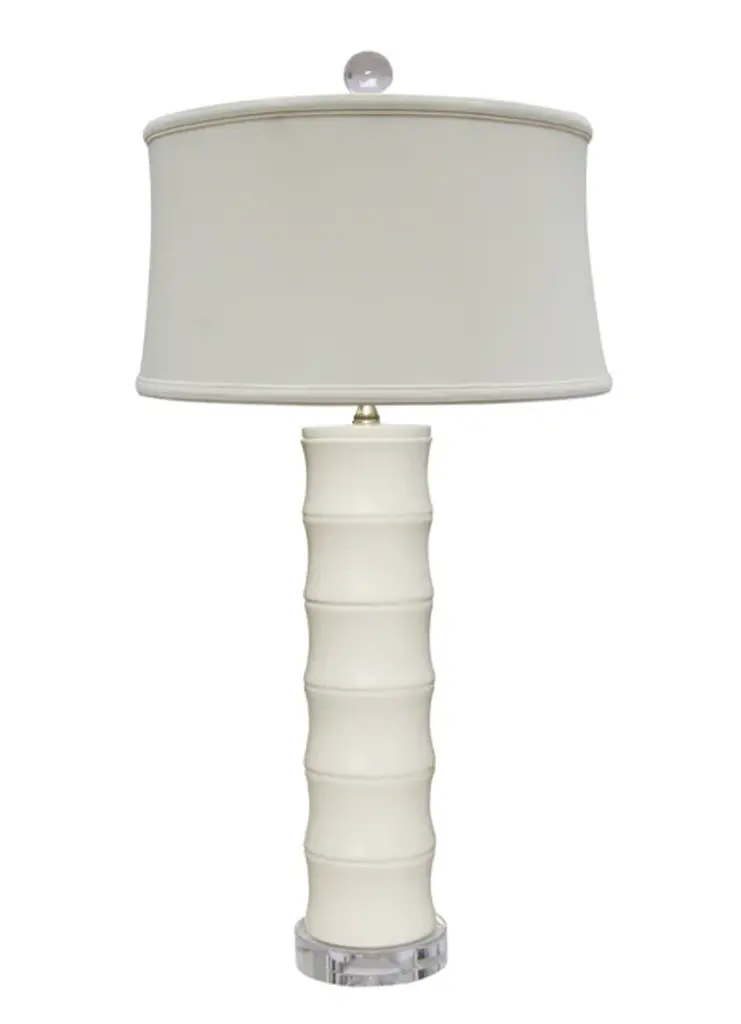 Clean and understated, this porcelain lamp shines. With gold leaf or crystal accents, the sophisticated lamp elevates any space with a luxuriously classic edge. The celadon green lamp is available with a gold leaf crystal base and accents and dove white comes with a crystal base and accents.