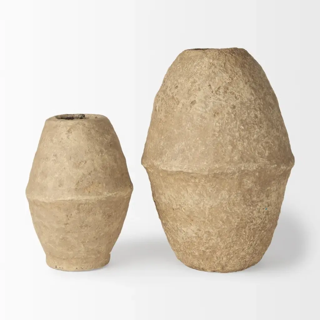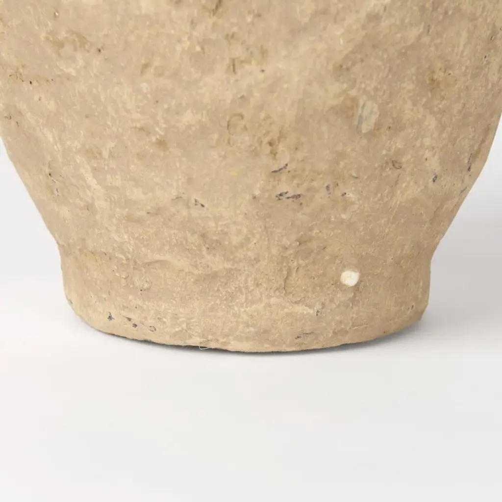 The Lovatt Floor Vase is a one-of-a-kind, handmade paper mache vase finished in beige tones. This container-style vase features a decorative ridge towards the center and has a wide opening. It can be paired with the Lovatt Small Floor Vase. On its own Lovatt makes a beautiful and unique home accent, or style with dried or artificial botanicals to add some additional color to any space. Named after the inspiring women artisans in India, no two pieces are the exact same. These unique, hand-crafted pieces of decor are made from upcycled materials and transformed into beautiful home accents.