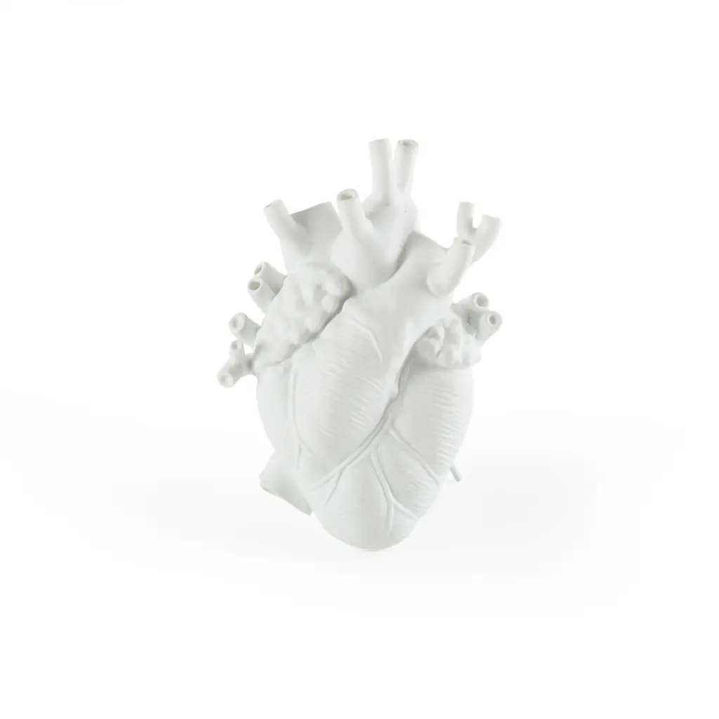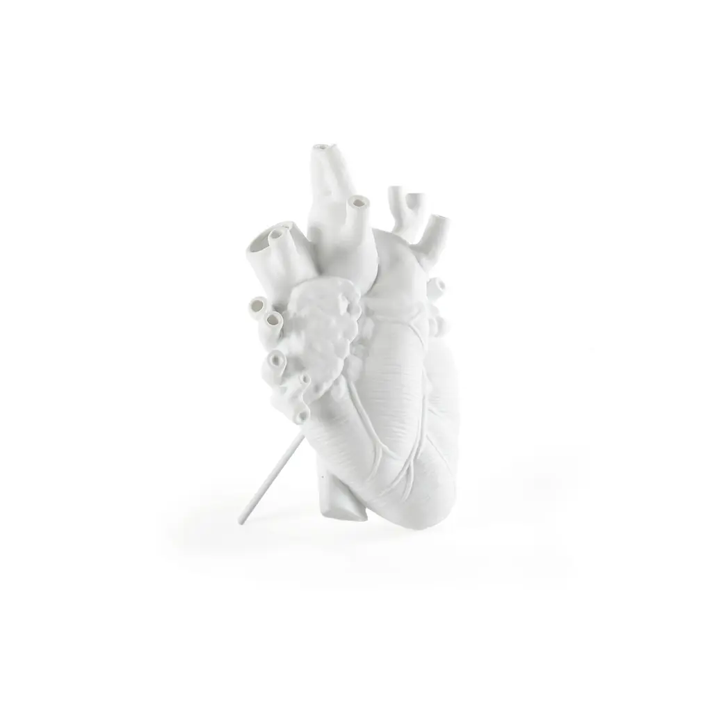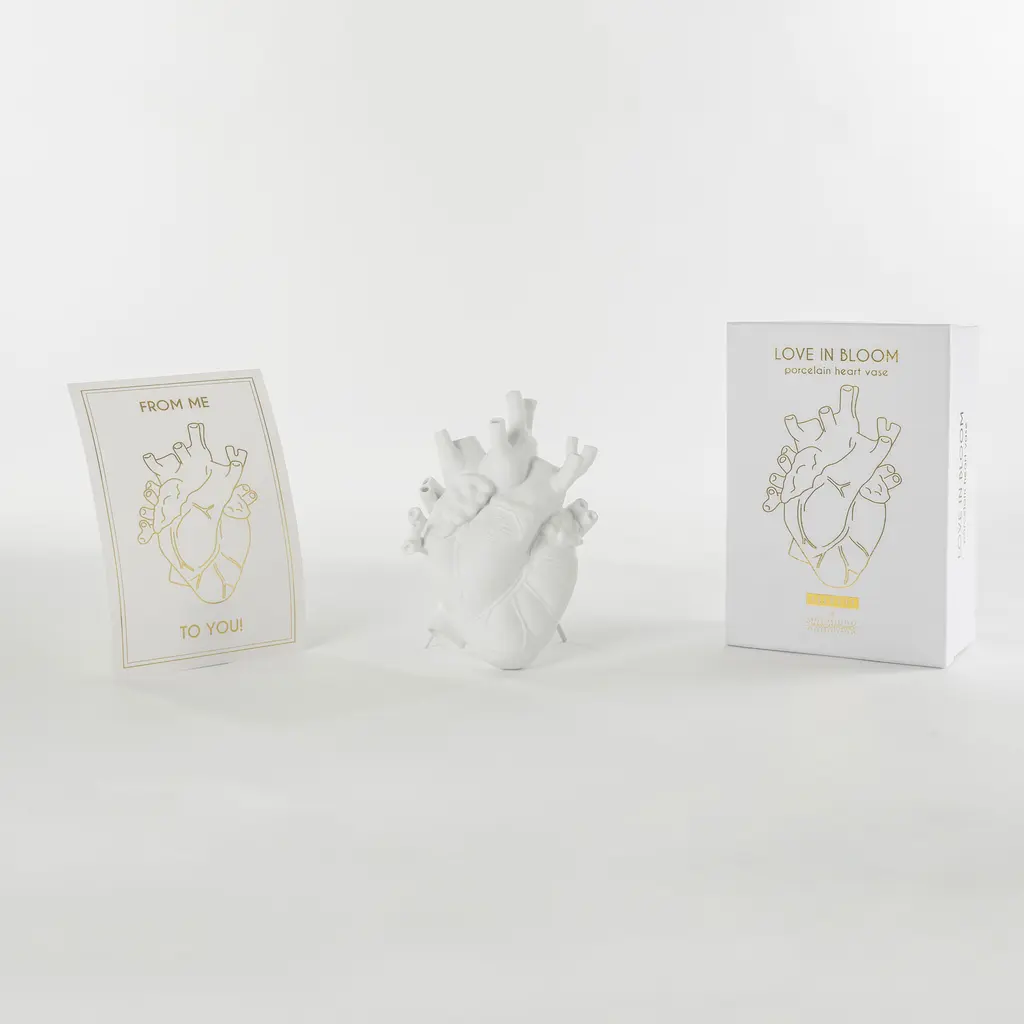 Love makes the heart bloom with joy. This concept is beautifully recreated in a vase form by Marcantonio Raimondi Malerba. Made for Seletti, this fine porcelain vase features an anatomically-correct heart design, with veins and arteries acting as holders for flower stems. When in use, the Love in Bloom Vase becomes a striking sculpture and a focal point in any room. Especially if used with brightly colored flowers that contrast the white porcelain. The vase comes with a metal stand but it can also be mounted on a wall. Gold lettering adds a stylish touch to the gift box, while the love note included in the package transforms this porcelain vase into a heartfelt gift for a special someone.