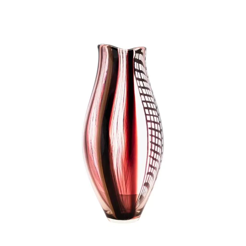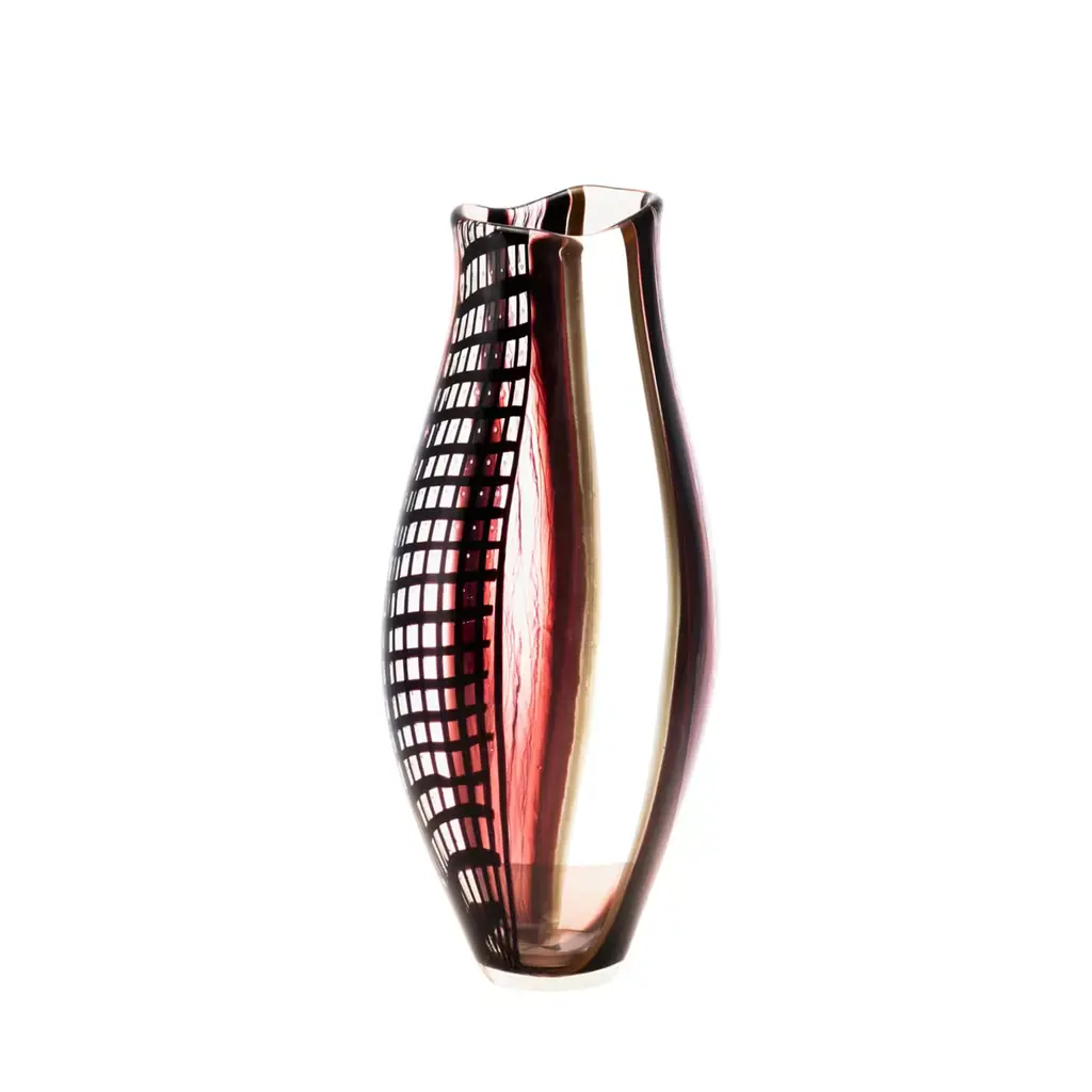 An ode to Venetian glassmithing tradition, this bud-shaped vase seduces with its triumph of dynamic and deliberate decorations. Fashioned by blowing together multicolor glass sticks, aventurine and filigree details further enrich its silhouette, where reticular and spiral elements owed to the ancient "Zanfirico" technique neatly stand out against its clarity. Warranty and authenticity certificates are included with purchase.