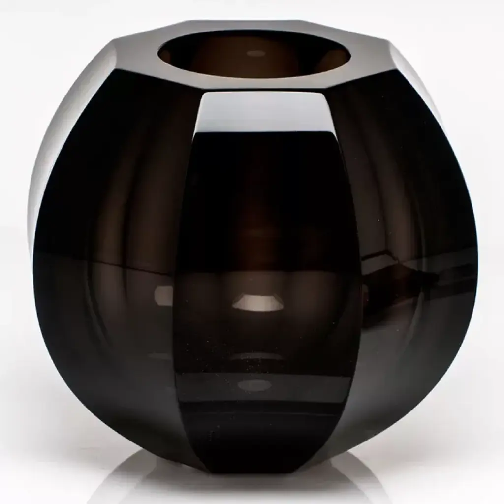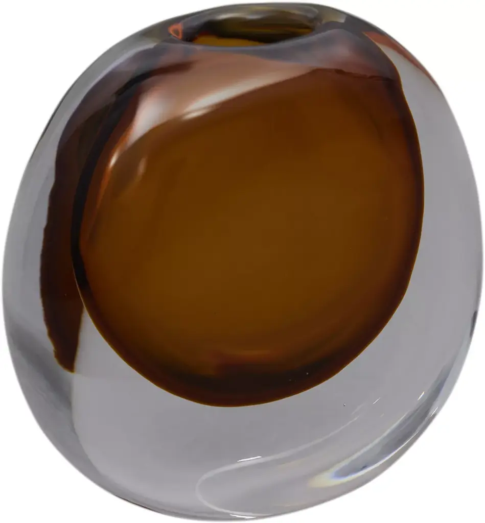 Color is truly on display with our Lucetta glass vase. This round vase is available in a vivid green, deep amber or moody grey color that appear suspended inside clear glass. You can also select from three heights including a 5-inch, 6-inch or 7-inch size. Please select your size then color before adding to cart.