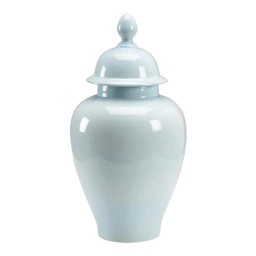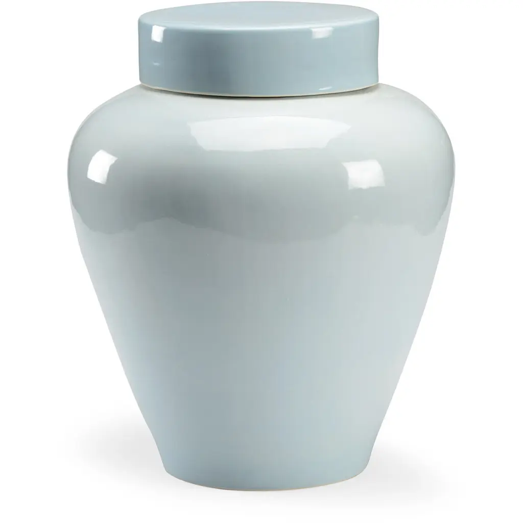 Porcelain. Baby Blue. Baby Blue Porcelain Jar With Lid. 14W X 14D X 17.75H