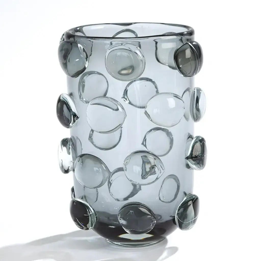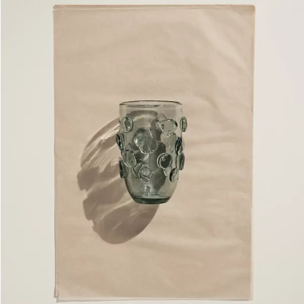 Handblown from recycled glass, the Lump Vase by Ferm LIVING transforms its surroundings with an artistic allure. Its uneven, chunky glass dots are meticulously placed by skilled artisans, making each vase a unique masterpiece showcasing exceptional craftsmanship. Display your favorite blooms, or let this vase stand alone as a statement piece, adding a touch of bespoke charm to any space.