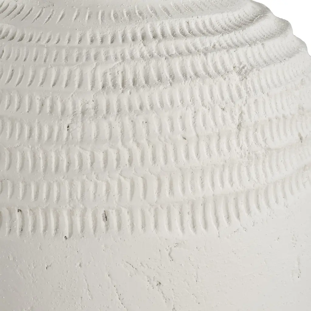 Elevate Your Decor With These Elegantly Textured Ceramic Vases, Featuring A Refined Chalk White Finish And Intricate Ridged Detailing. Their Artisanal Design Bring A Sophisticated, Modern Touch To Any Space. Perfect For Displaying Florals Or Standing Alone As A Statement Piece. Sizes: S-9x11x9, L-12x14x12