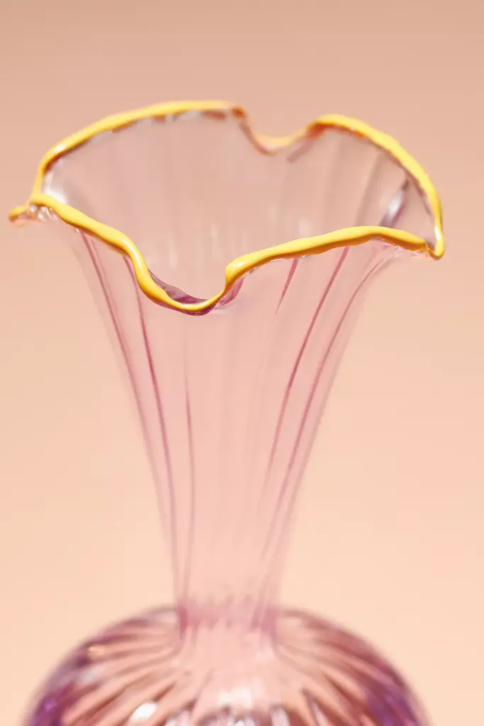 Pairing a soft-hued glass with an elegant silhouette, this bud vase evokes an easy sense of balance and beauty to spaces, perfectly complementing the freshest summer blooms. Please note: The composition of borosilicate glass allows for beautiful transparency and thermal stability but as with all glassware, please handle with care!