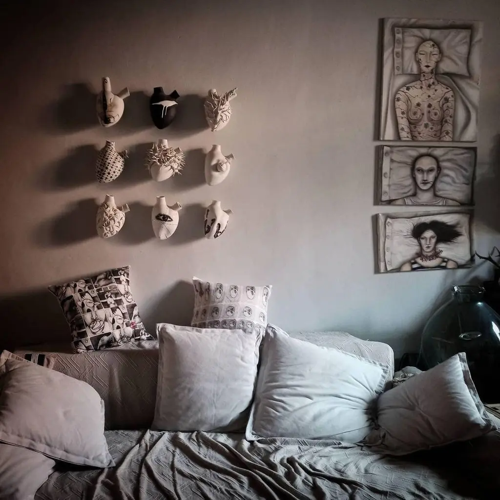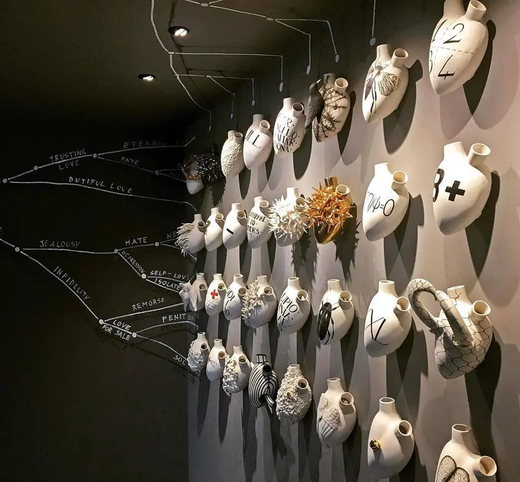 The heart collection is the result of the extravagant creativity of two innovative designers, who are inspired especially by the human body.The heart collection is inspired by the Neapolitan traditional Smorfia, taking up its symbolism. Each number has a meaning, it is used to analyse and interpretate dreams, to convert them into numbers to bet, to play the Lotto.These Biscuit porcelain Hearts are not only sculptures, each one is a vase that you can hang on the wall and fullfill with fresh flowers or ornamental flowers.SizeH 10.63 in. x W 6.7 in. x D 4.33 in.H 27 cm x W 17 cm x D 11 cm.Available in different colours: Gold, White, Black, Red.