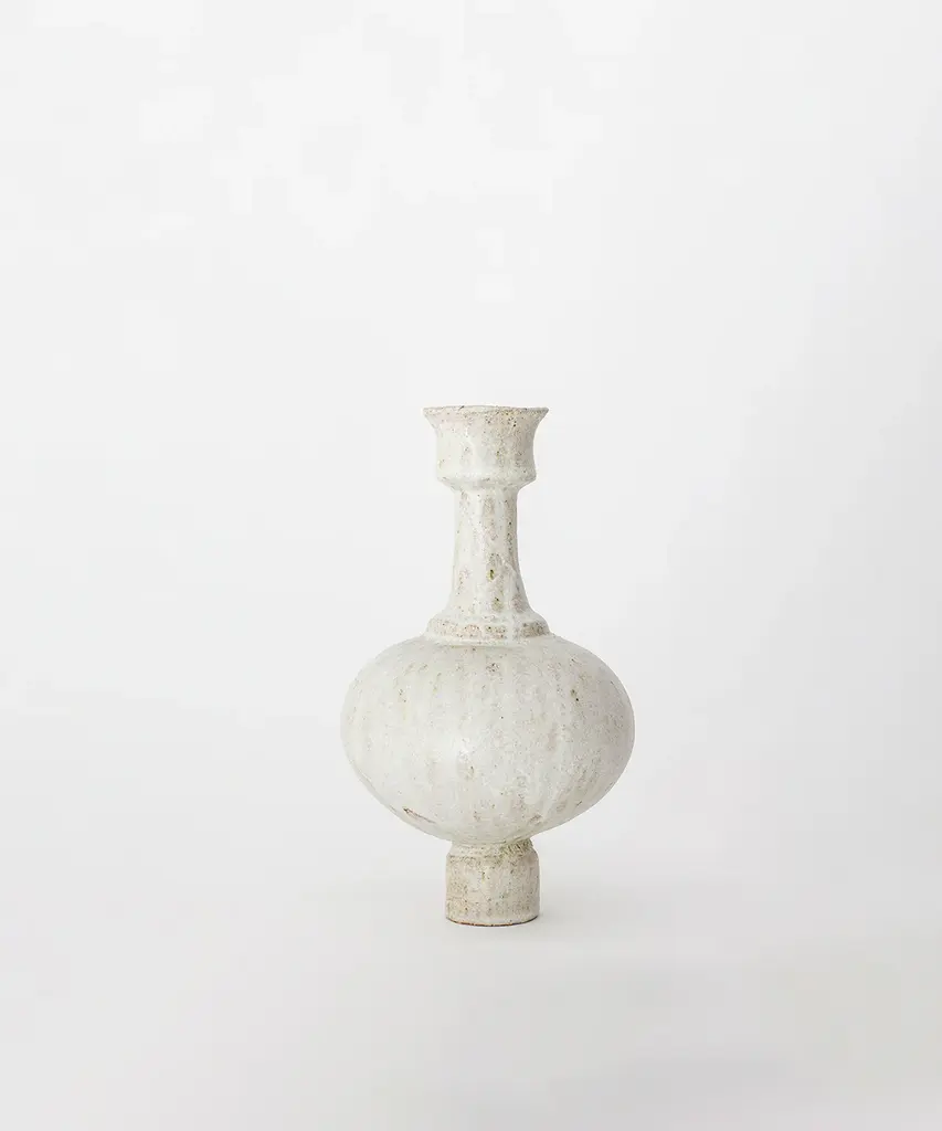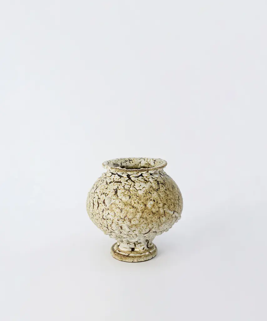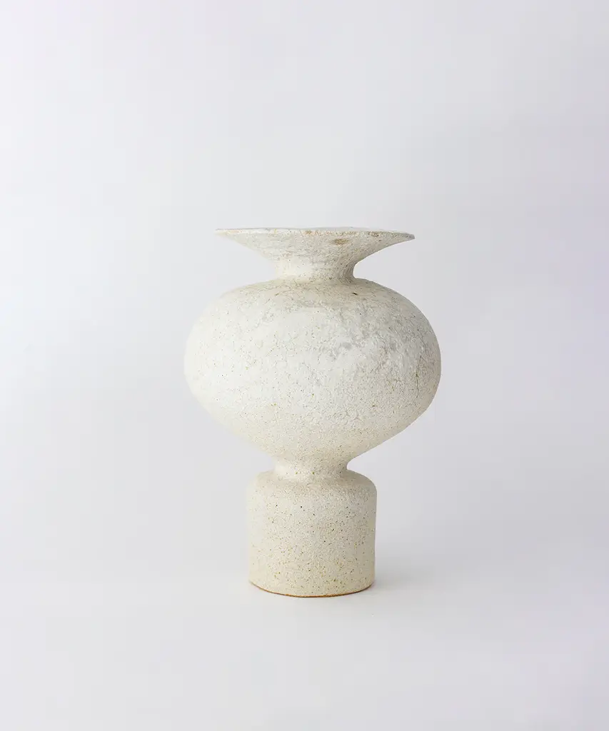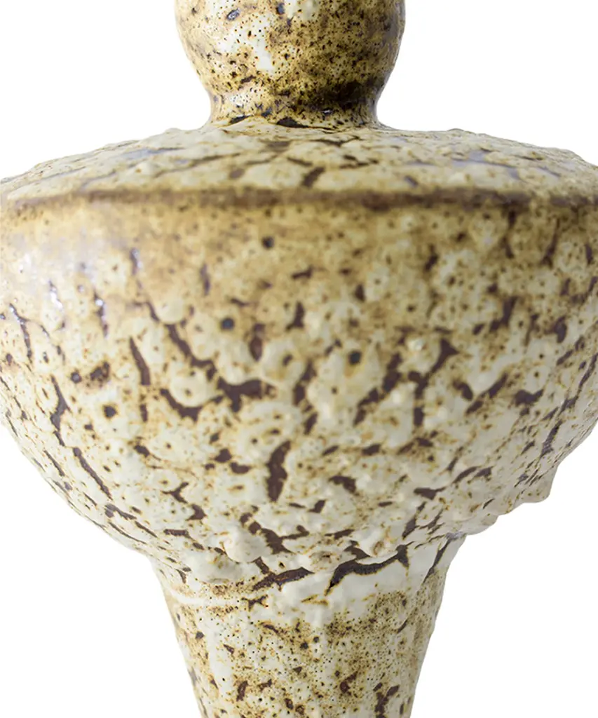 The N.3 series results from analyzing the different types of vases found in the Mediterranean basin, especially from Ancient Greece and Rome. The collection combines ancient forms and shapes with experimental surface treatments featuring glazes and contemporary elements. These pieces are made of stoneware with grog from Manises (Valencia), using the plaster casting technique. Their surfaces are obtained by applying self-formulated glazes in various layers. The stoneware vase in handmade to order by the Valencia-based studio, Canoa Lab.
