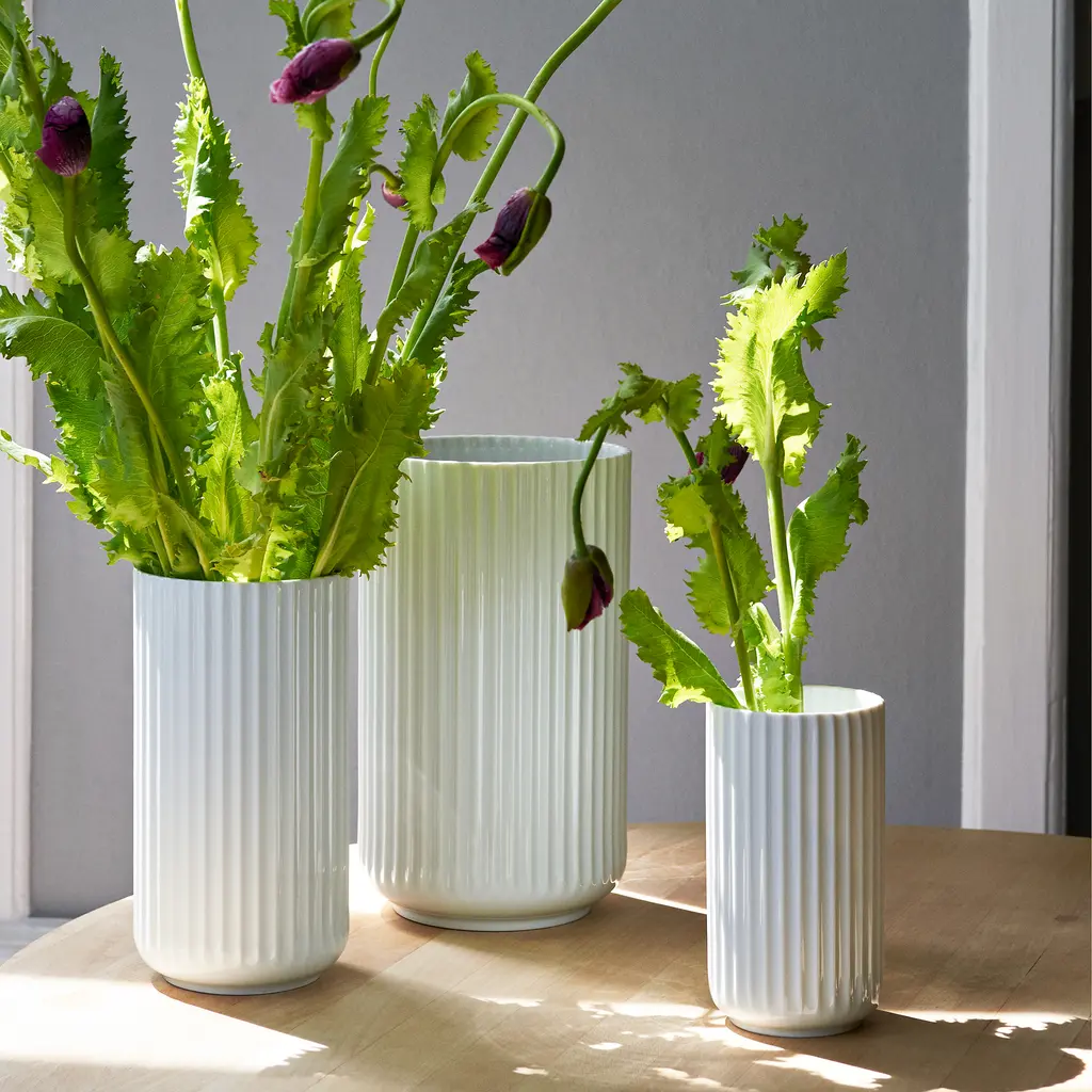 The Lyngby Vase White is a timeless design icon from Lyngby Porcelæn, celebrated for its minimalist aesthetic and functionalist roots. Its clean, vertical grooves and understated elegance make it the perfect vessel for showcasing brightly colored flowers or delicate branches. Whether placed on a dining table, coffee table, or mantel, this vase effortlessly enhances any space with its refined simplicity. Crafted with meticulous attention to detail, the Lyngby Vase White reflects a legacy of Danish design excellence. A versatile and striking addition to modern and traditional interiors alike, it’s as beautiful empty as it is filled, embodying minimalist perfection in every detail.