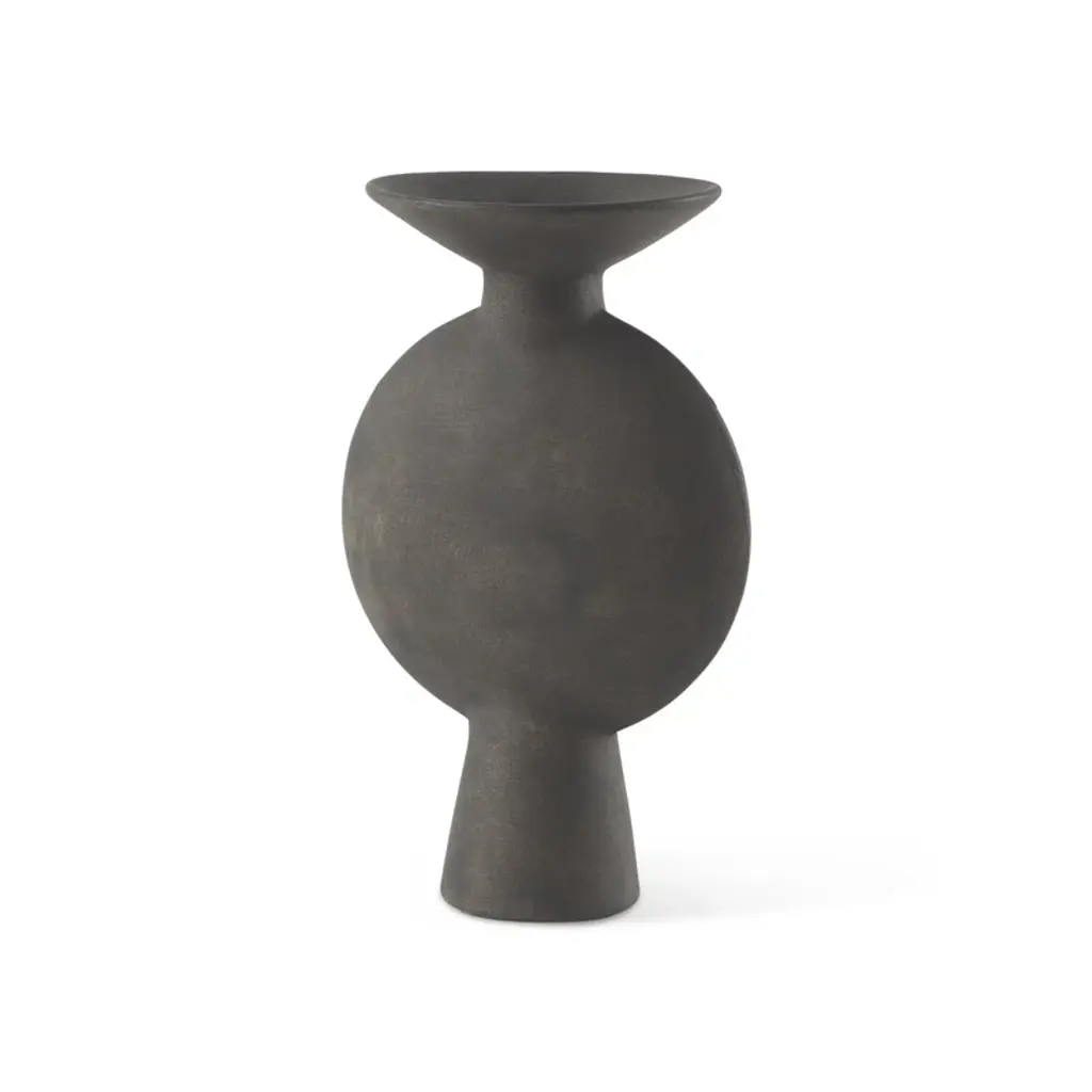Fashioned after an old chalice or goblet, the sculptural vase is a gorgeous décor accessory that will sit perfectly in the modern home or office space. It makes a statement with its shapely form and deep, earthy finish.