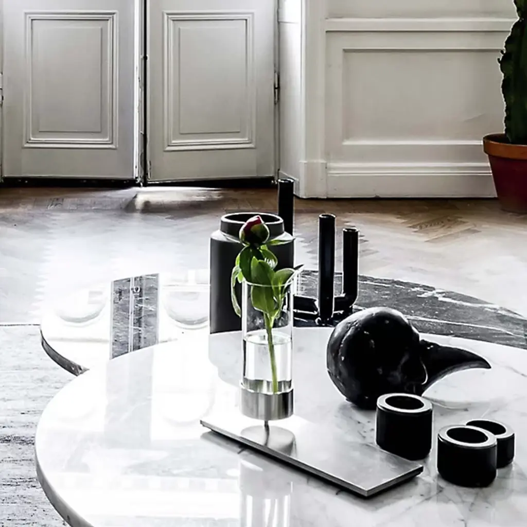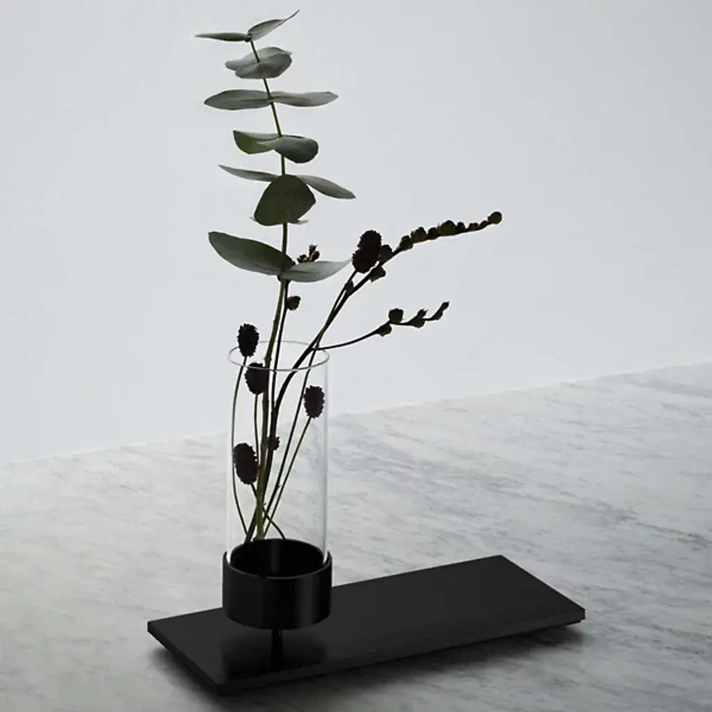 Add an unexpected, industrial edge to your home decor with the Machined Vase from Buster + Punch. Machined from solid steel, this vase features a handblown glass cylinder that elegantly holds your favorite plant or flower. The fine glass form is perched atop a sleek rectangular steel plate, allowing you to artfully display greenery on tables or counters.