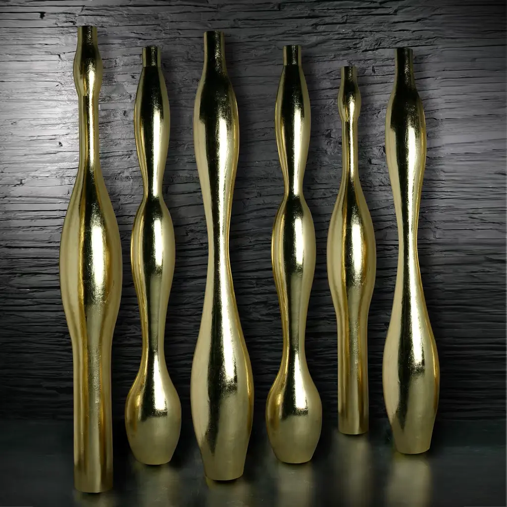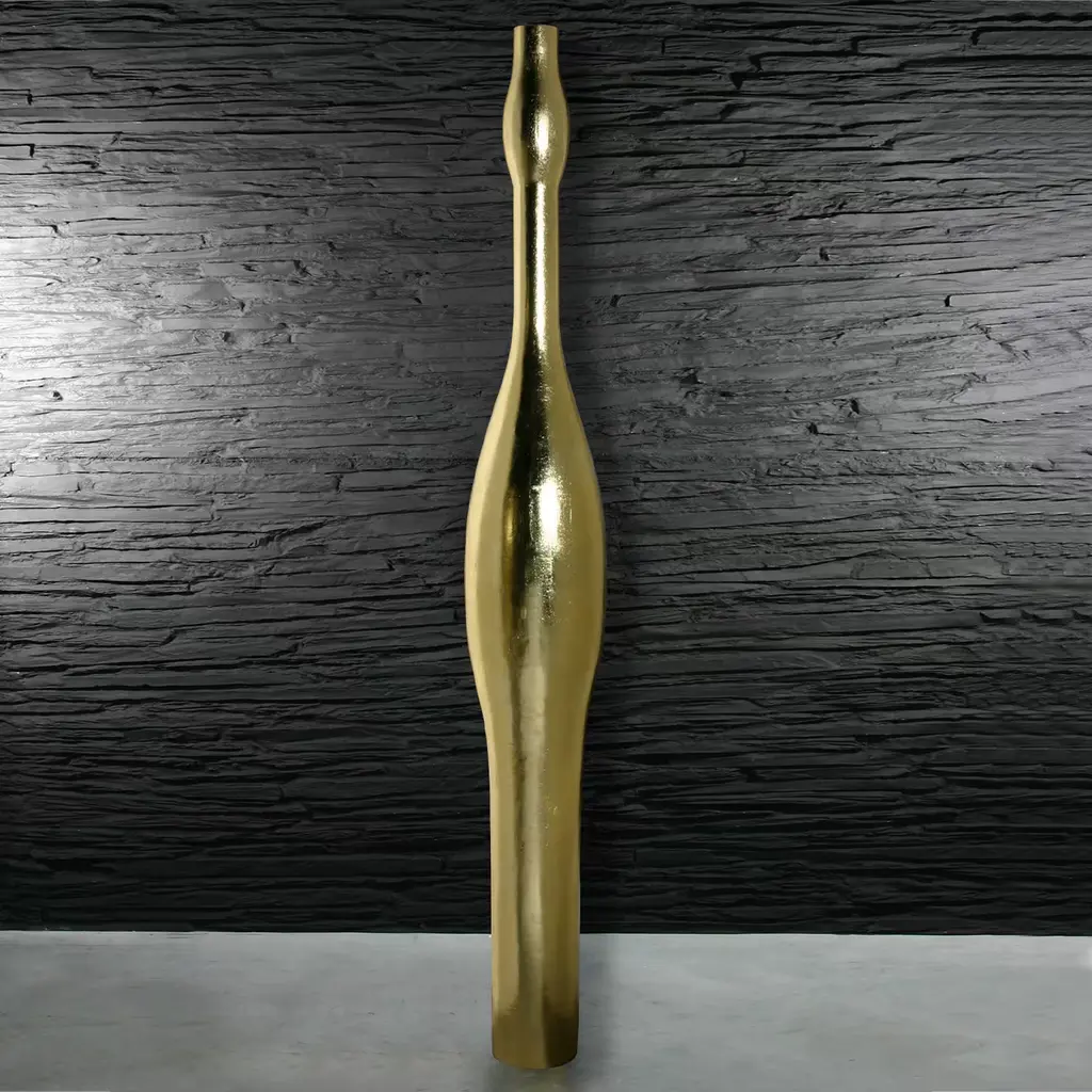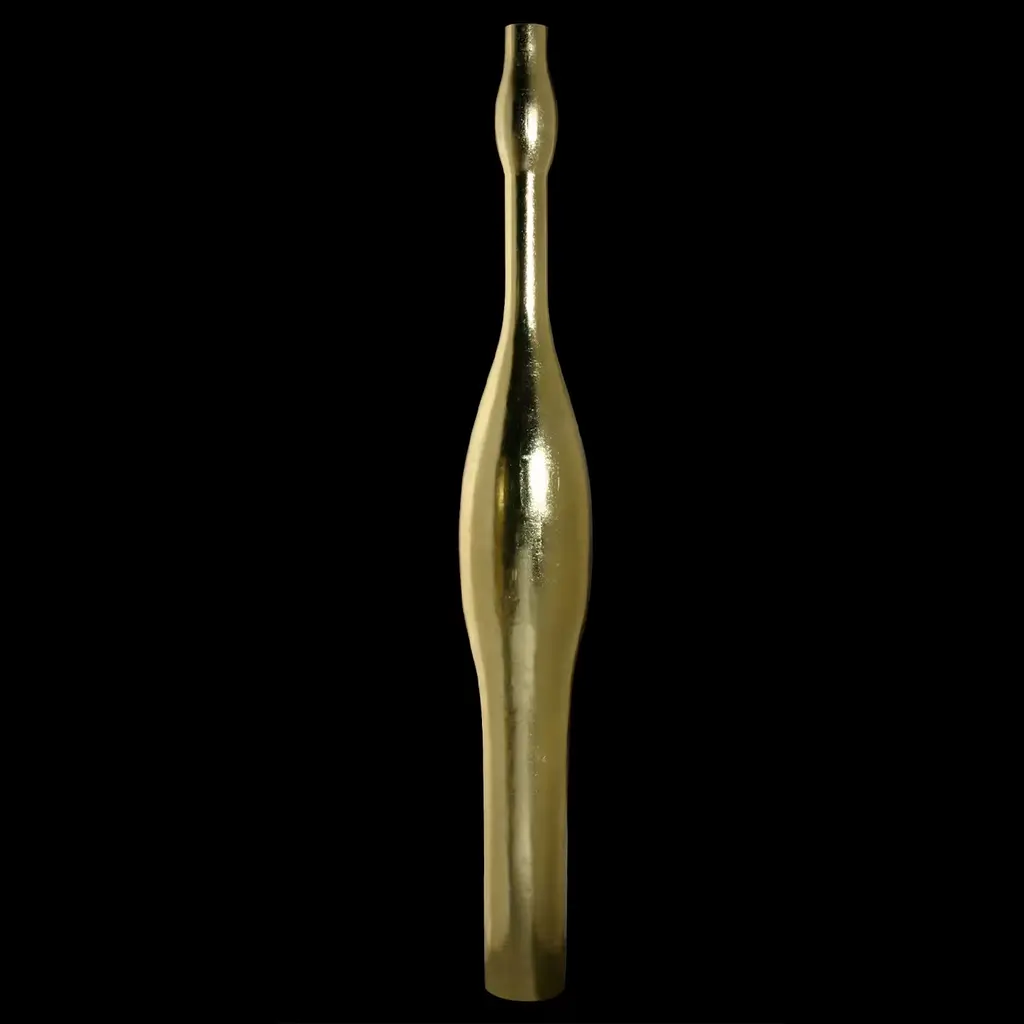 Evoking the shape of a female body, this statement-making vase boasts a tall silhouette (231cm) whose sinuous lines are enhanced by prized gold leaf. A collector's piece made entirely of resin, this vase will bring interest and shimmering elegance to a modern living room, lounge area, or entryway in both residential and commercial interiors.