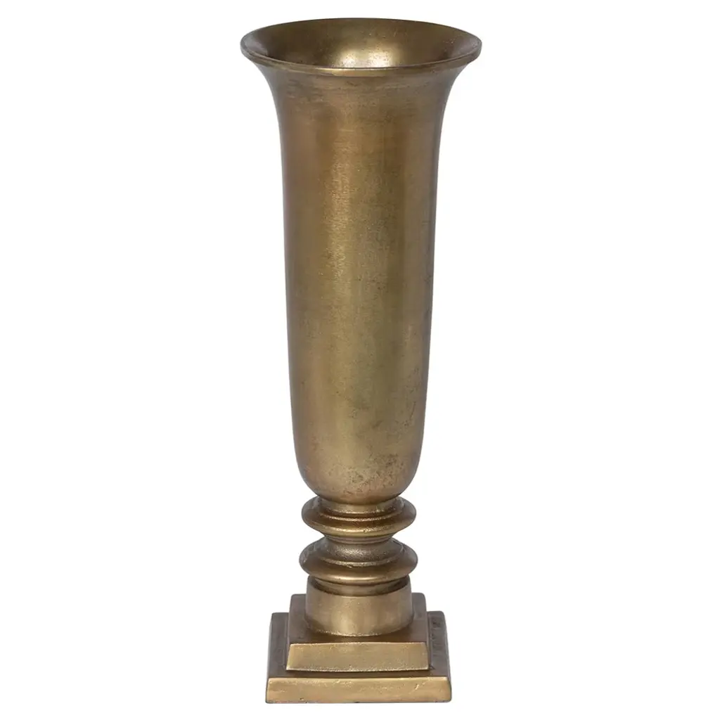 A testament to minimalist design aesthetic, this candlestick is a modern take on a classic object. Fashioned of polished brass, this piece boasts a sleek silhouette with bold curves: the wide top and the base dramatically slope to form a tall, slender shaft. The bobeche-top can be removed to transform into a vase. Also available in a titanium plating, please ask the Concierge for details.