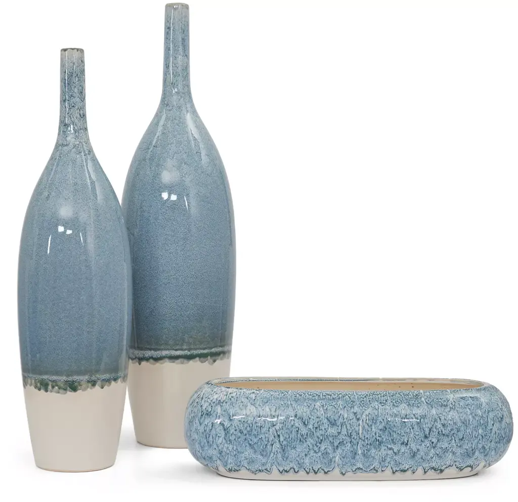 Embrace simplicity and serenity with our handcrafted Maia vase. This exquisite piece is expertly crafted with ceramic and features a blue reactive glaze finish, ensuring each vase is unique and full of character. This piece is available in either a 26 or 30-inch height. Please select your size before adding to cart.