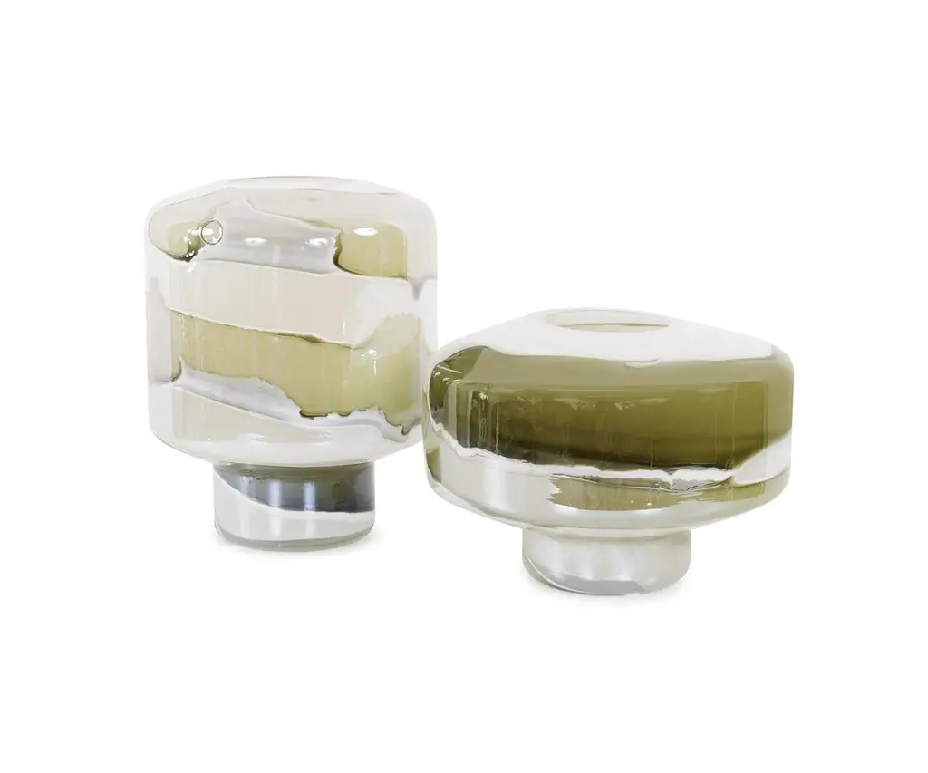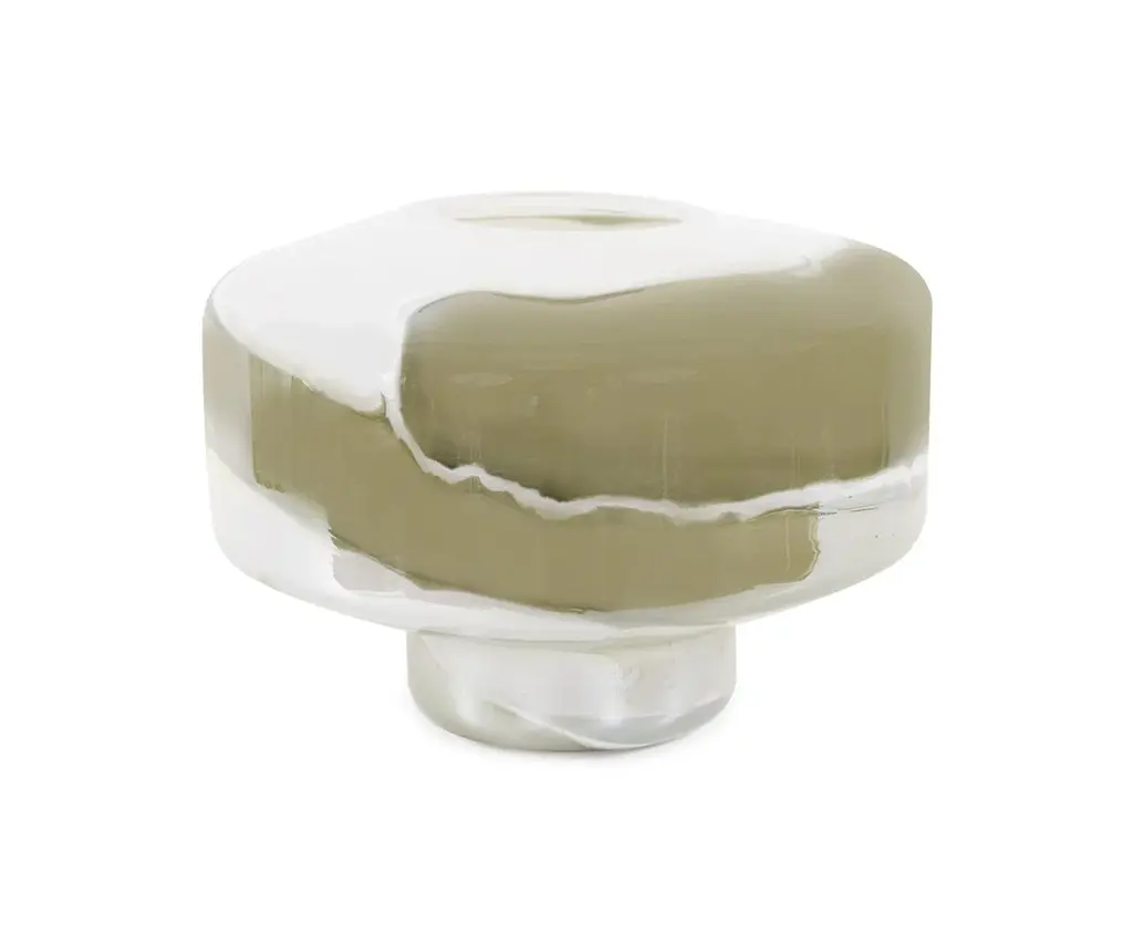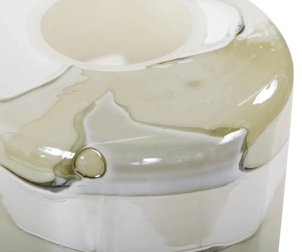 The Malin Tall Vase features serene neutral shades layered in a striking abstract design and a bold cylindrical shape.