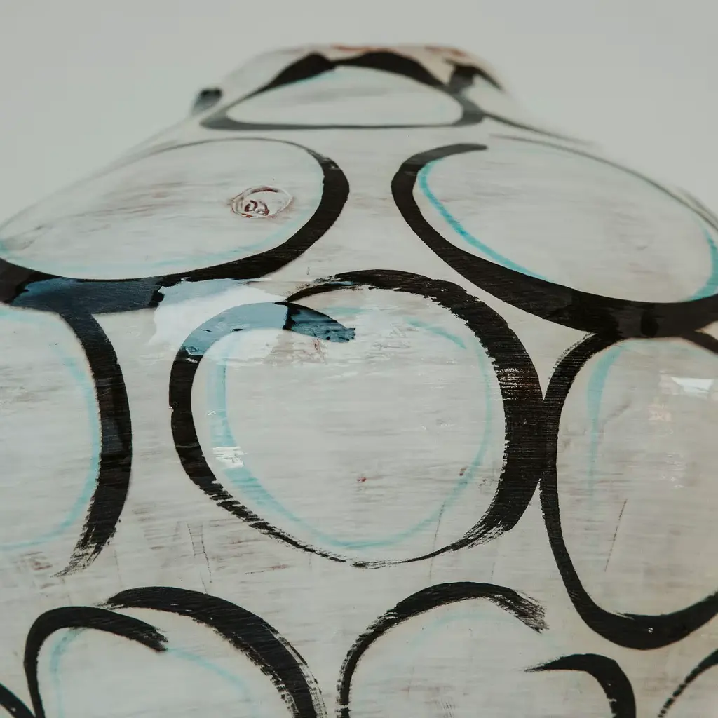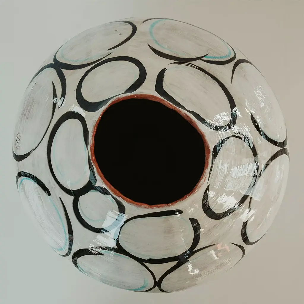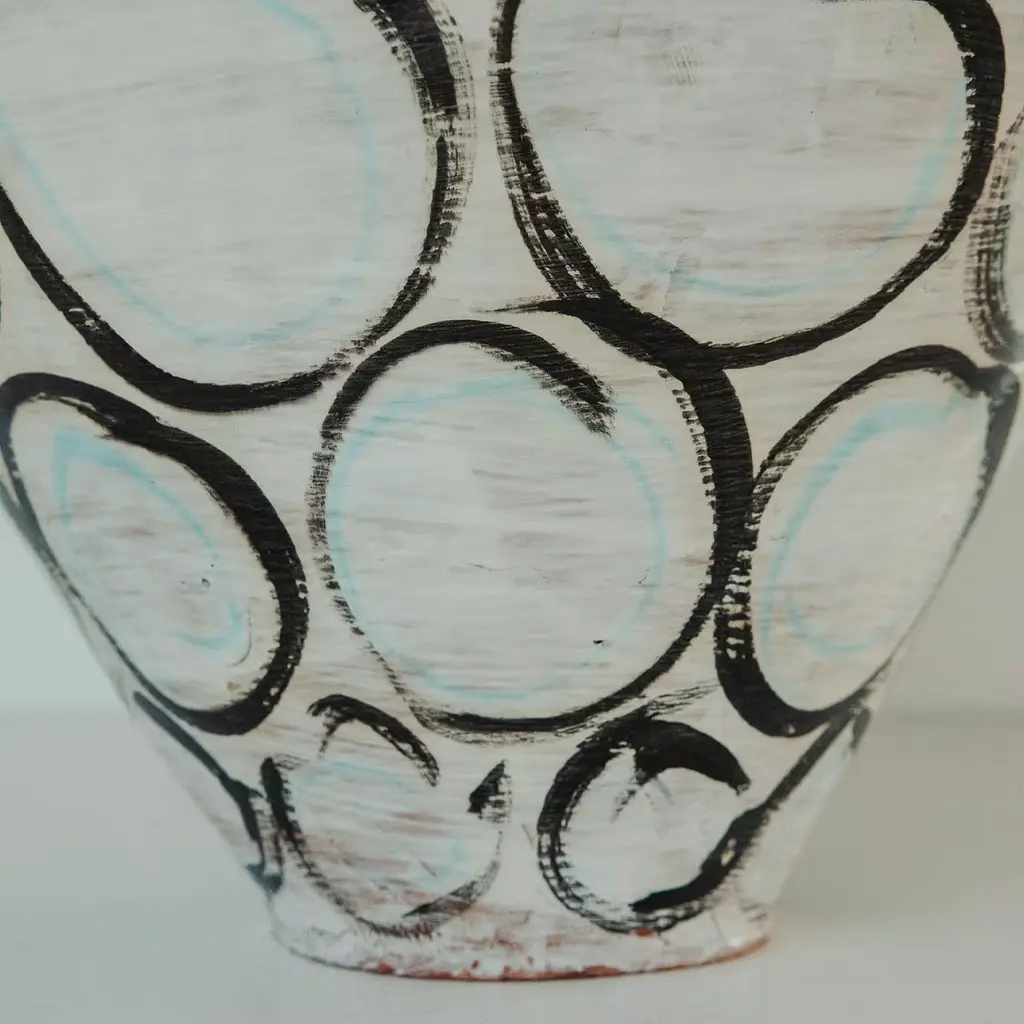 Vase made exclusively by hand using the ancient Colombino (COIL) technique, without the use of lathe and other tools. Decorated after the first firing at 980 degrees, with natural colors and pigments of manganese and copper green. Its imperfections in shape are an indication of the product's craftsmanship.