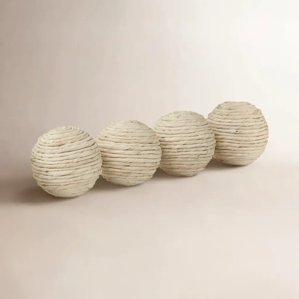 Add a touch of natural elegance to your home with this set of four hand-painted jute and sisal vase fillers. Each piece is thoughtfully crafted by skilled artisans, ensuring a one-of-a-kind look that brings warmth and texture to any space. These lead-free fillers are perfect for residential use and make a delightful addition to your favorite vase or decorative bowl. So go ahead, get creative, and let these versatile pieces enhance your home's ambiance in a truly organic way.