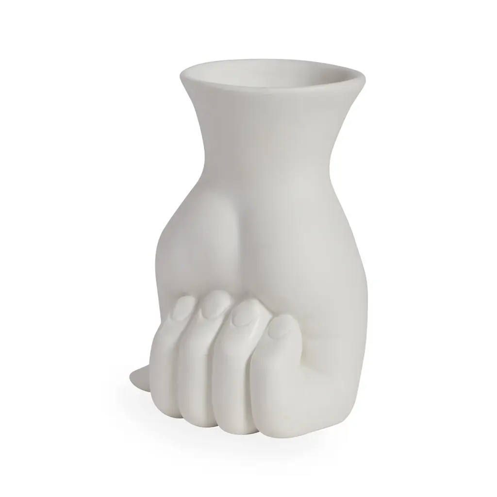 Hands Down. A round of applause for surreal gestures worth a second glance. Crafted from high-fired matte porcelain, our Marcel Vase is a manicured fist-bump to every hands-on dreamer we admire, from Duchamp to Dalí. One is brilliant with or without a bouquet, or knuckle down and line several across your mantel or down the center of your dining table.
