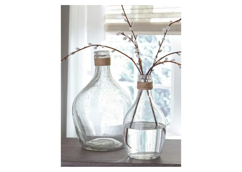 The versatility of the Marcin 2-piece vase set is a stylist’s dream. Light brown rope ties around the top of the bottleneck design, while a seeded finish brings texture to the clear glass. Drop in faux cotton stems for a vintage or modern farmhouse look. Weight 8.000 lbs. (3.6kgs.)