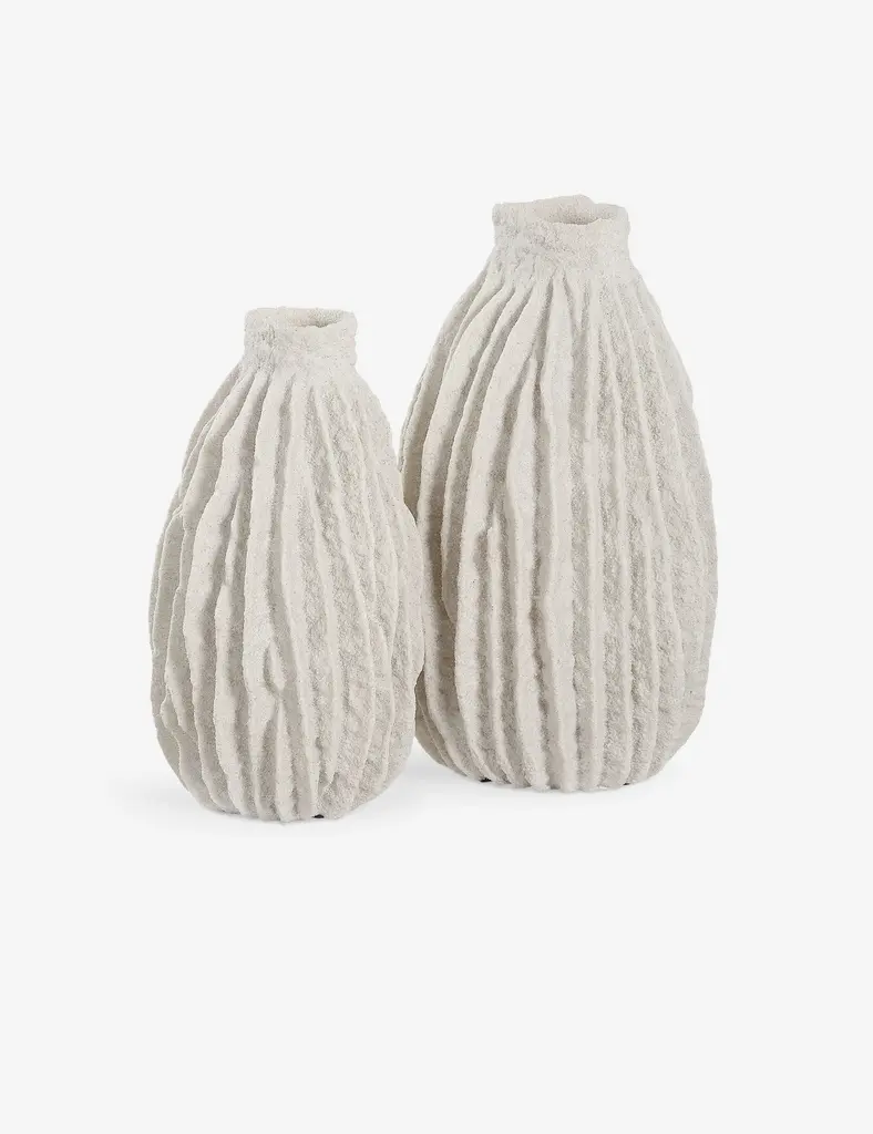 With pleated curves and a tactile finish, these vases add soft structure to your space. Perfect as a pair or styled separately with branches or florals.