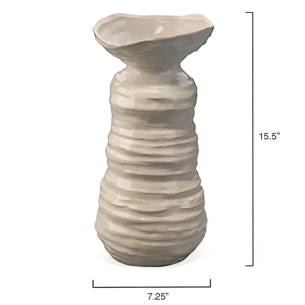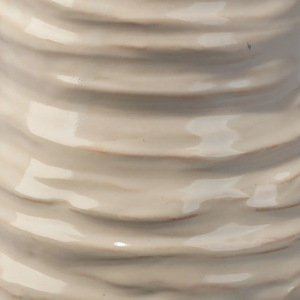 Our Marine Vases embrace an organic shape with a ribbed ceramic body and a wide opening, perfect for any flower arrangement. Available in two sizes and two finishes, including a bold slate-blue reactive glaze and a sophisticated white ceramic, both topped with a pearlized finish.