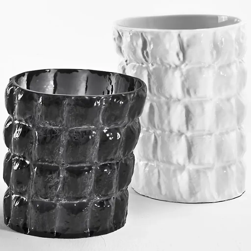 At once soft and strong, the Kartell Matelasse Vase was designed by Patricia Urquiola to replicate the pillowy texture of matelasse fabric in smooth transparent or batch-dyed PMMA. It comes in a variety of colors to vibrantly accessorize any tabletop, and with a generous size to accommodate large floral arrangements. It can be even be used as an ice bucket or small waste bin.