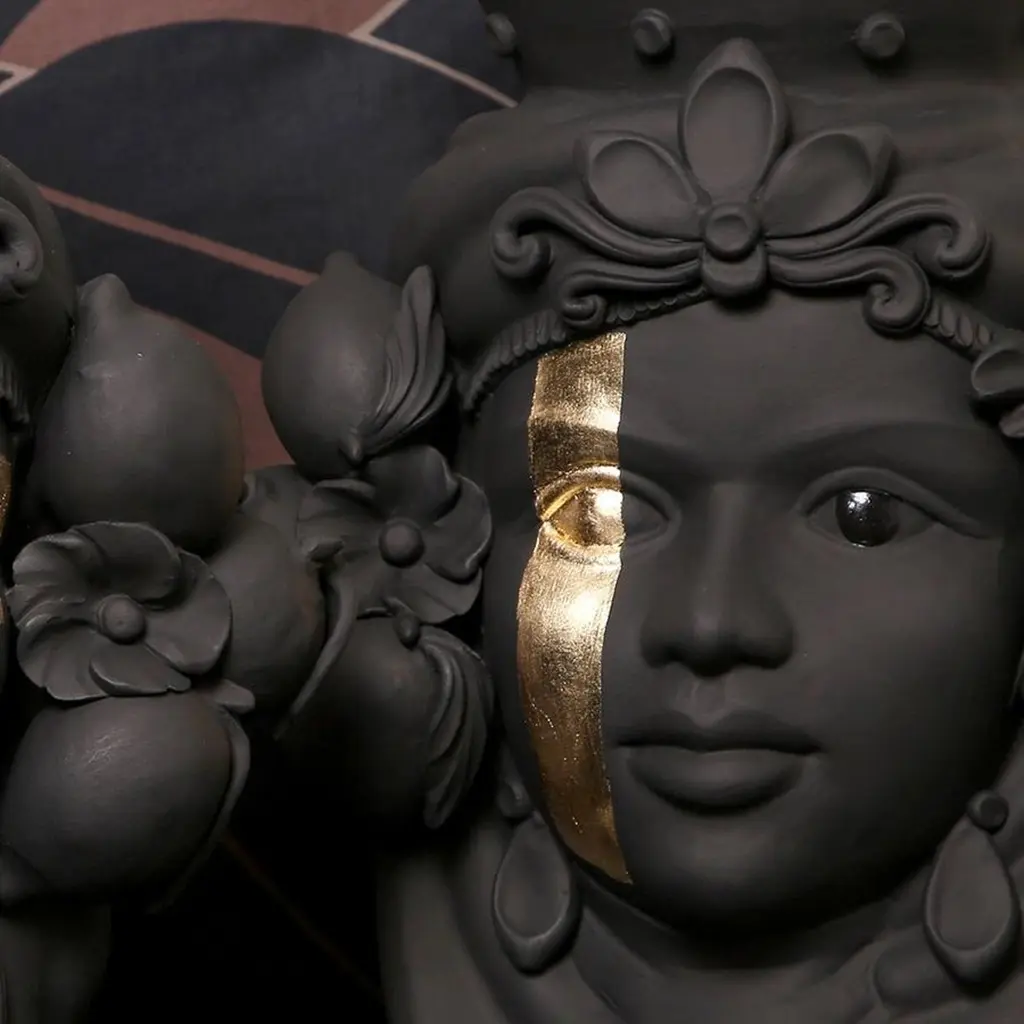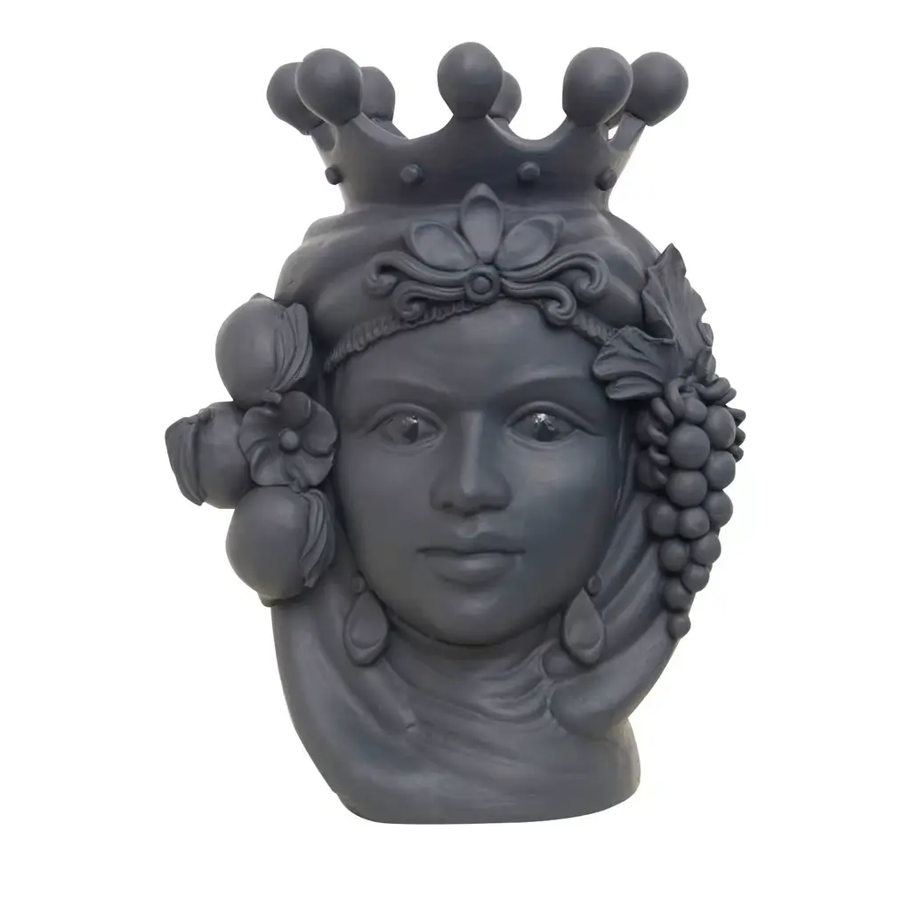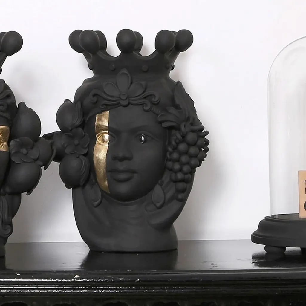 Scroll down and click "view all from Seller" to see more than 400 other unique products. (2)A captivating ode to traditional craftsmanship and modern sensibility, this anthropomorphic vase of a Sicilian woman is crafted with care by master ceramicist Stefania Boemi, this piece is hand glazed in a deep black matte hue and boasts an expressive visage with an ornate headdress and crown flanked by locks of hair intertwined with Sicilian lemons. One of the eyes features a gold foil band running vertically down the face, striking touch, emphasizing the beauty of the woman's gaze.Designed by Stefania BoemiMade in Italy:Made in Italy furniture means design, quality, style and sophistication.The typical elegance of Italian design can be found in this piece. No wonder that the world famous designers like Philippe Starck, Karim Rashid, Piero Lissoni, Rodolfo Dordoni and many others put their signature next to made in Italy.